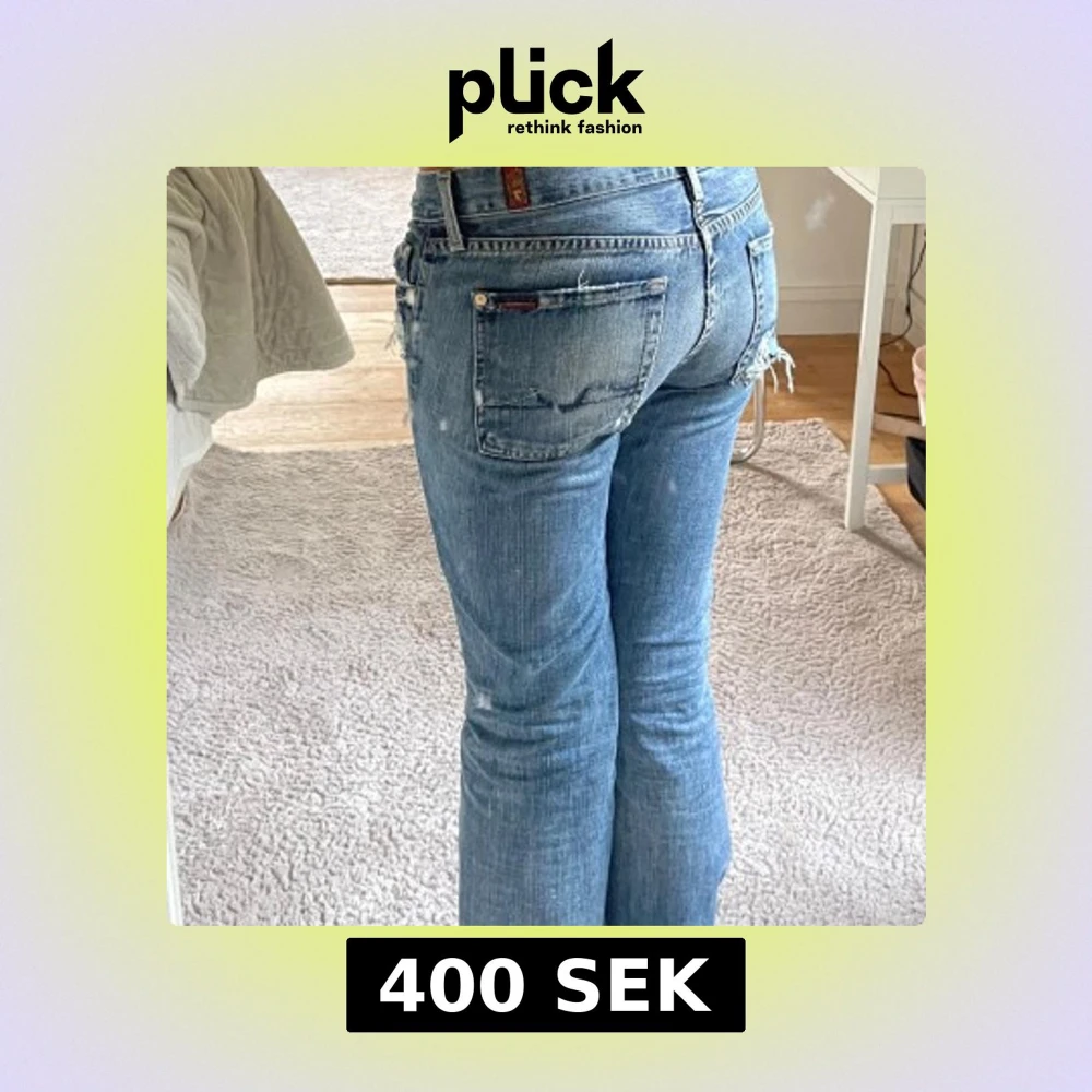 snygga lågmidjade jeans, slitna nere vid hälarna, storlek 29 men passar mig som har 26/34 i jeans storlek. Midjemått:85 innerbenslängd:86