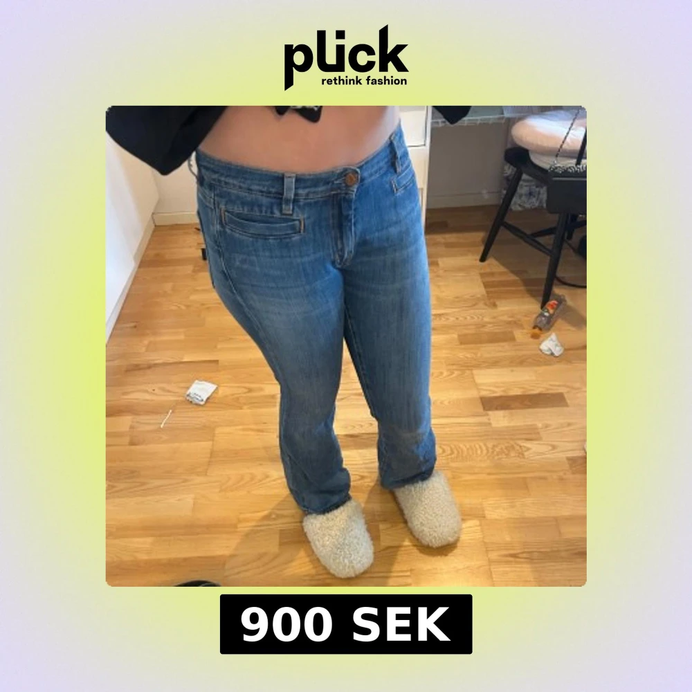 Säljer ett par lågmidjade blå jeans med bootcut passform. Jeansen är i storlek 28 från MiH JEANS från 2000-talet.