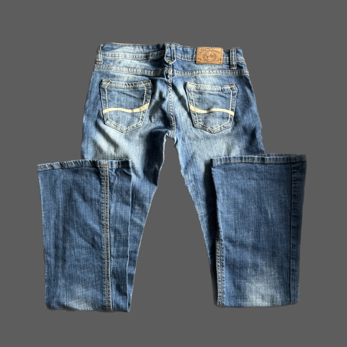 Super snygga lågmidjade y2k bootcut jeans! midjemåttet: 39cm tvärsöver, innerbenslängd: 80cm PS. KOLLA IGENOM MITT KONTO NI KOMMER HITTA MÅNGA Y2K OCH VINTAGE PLAGG
