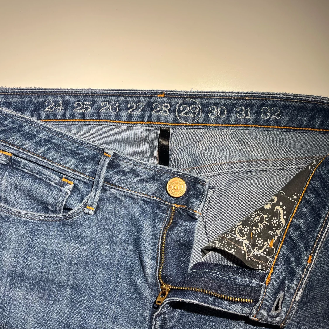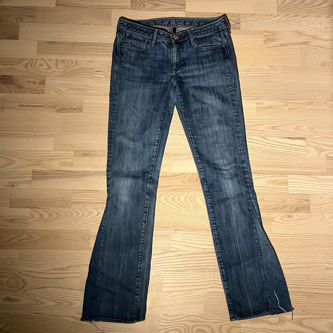 Lågmidjade blå jeans med rak passform. Jeansen är från Earnest Sewn, köpta second hand men aldrig använt dom själv. Finns några få lösa trådar längst ner på byxbenet (se bild) men annars i mycket bra skick 💗Midjemått: 40cm, Innerbenslängd: 82cm