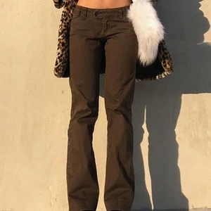 Ett par snygga bruna byxor, lågmidjade 😍😍 Längd: 102cm Höft: 96cm Midja: 72cm 🥰🤩