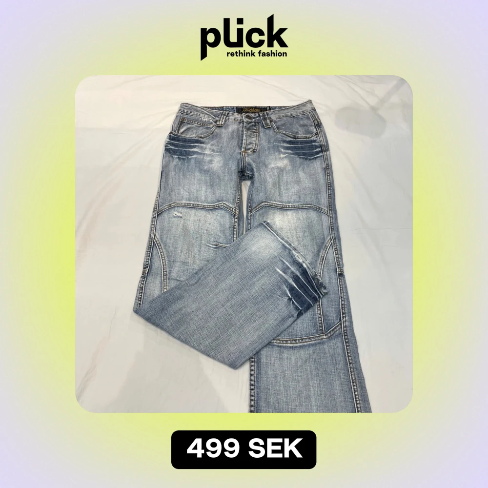Baggy jeans från Fishbone! Midja 43 cm rakt över, total längd 102 cm och gren 26 cm🤩 killmodell men passar tjejer också
