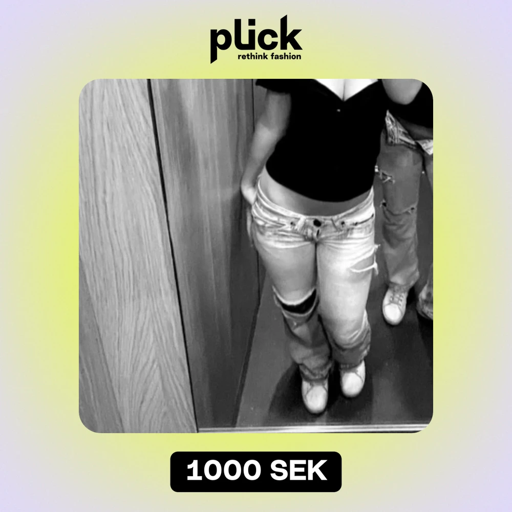 INTRESSEKOLL!! På jeansen till vänster som är så snygga i ljusblått 💕💕 står tyvärr varken märke eller storlek i dom men skulle säga att dom passar nån som är runt 165💕