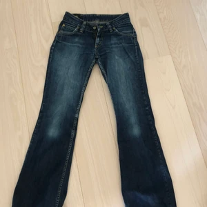 Köpte dessa fantastiska lågmidjade jeans men dem var tyvär för små för mig🥲. Jag har lagt in en bild då man ser att pressen runt läran är 22cm och längden är 94cm från främre midjan och ner. På innersidan är jeansen 73cm! Står ej för prakt💌