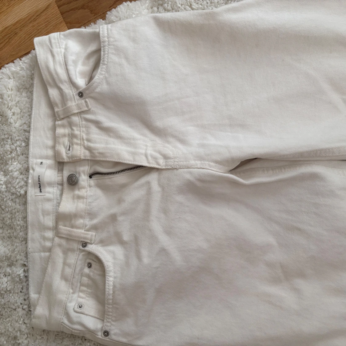 As snygga lågmidjade vita jeans från ginatricot! De är lösa i modellen vid benen! Något tighta i midjan, men de sitter snyggt😎😍🤍