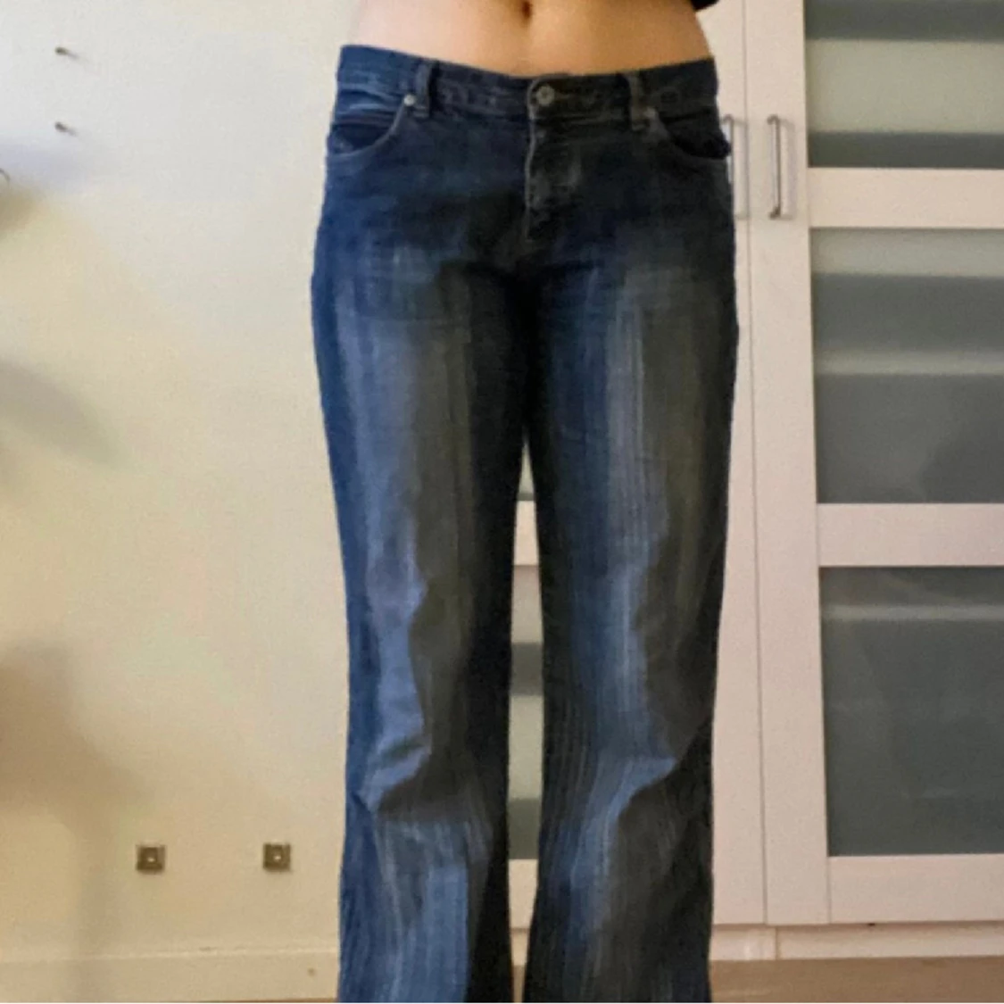 Så himla snygga lågmidjade flare jeans som tyvärr är för små för mig! Så cool tvätt❤️🔥 Innerbenslängd: 78 cm Midjemått tvärs över: 39cm