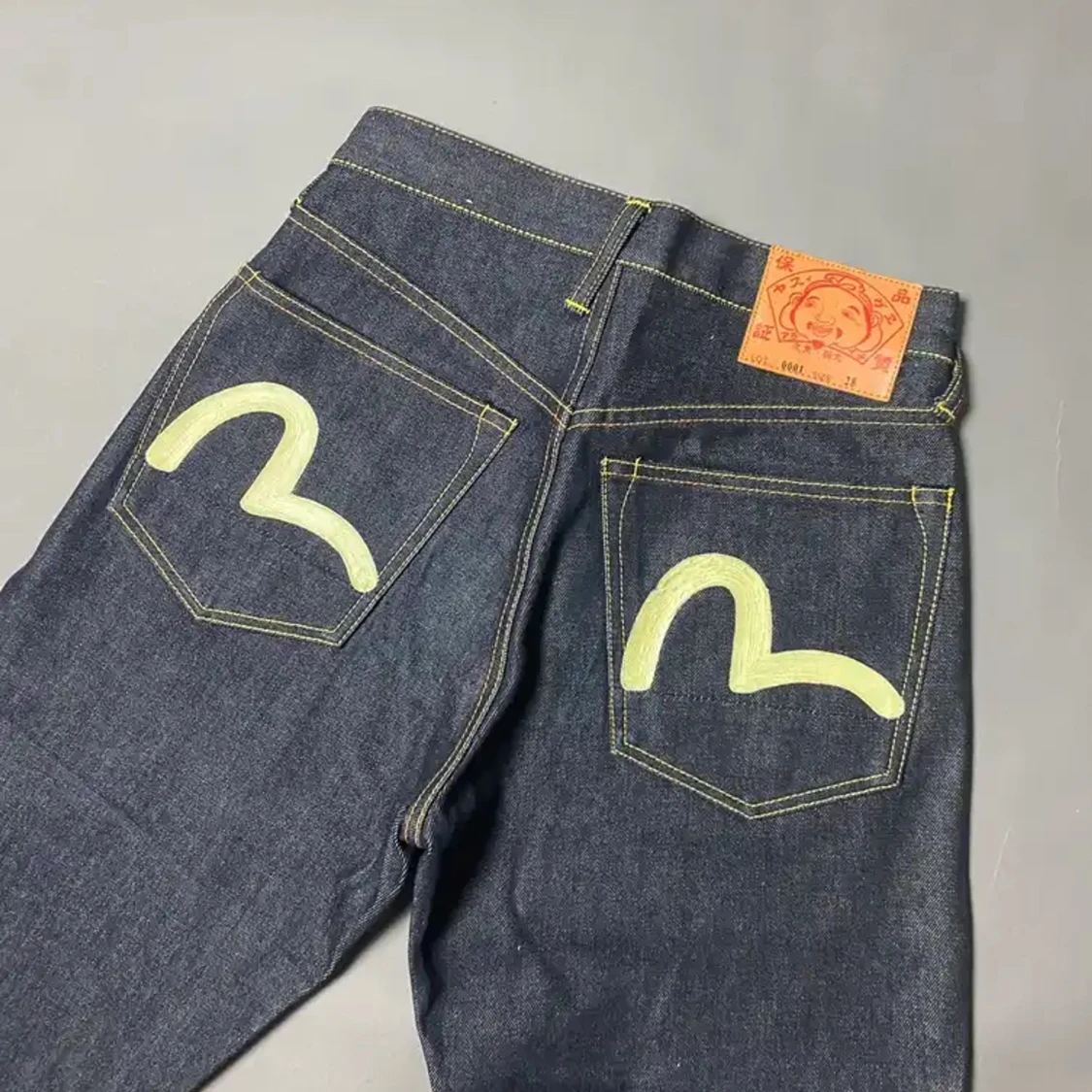 Vintage selvedged Evisu jeans i mycket gott skick köpta på grailed. De är i stl 28 herr. Skriv till mig för fler bilder.