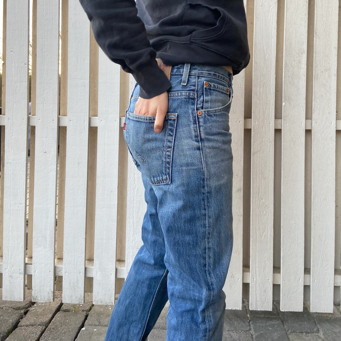 Assnygga, lite lågmidjade, blåa Levi’s jeans som jag tänkte sälja vidare. Har snygga slitningar nere vid foten och de är låånga😍😍🙏 Står storlekarna W33 och L34 men de sitter bra i midjan på mig som brukar ha 27/28... Enda lila felet är på höger bakficka där tråden har börjat lossna lite men det är easy fixat. Du står för den spårbara frakten på 66kr☺️💕💗💕😋