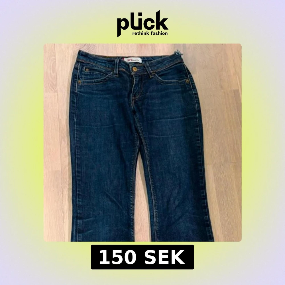 Mörkblå jeans från Levi's modell 572 bootcut. W27. Lite slitningar längst ner. Obs blixtlåset måste fixas.
