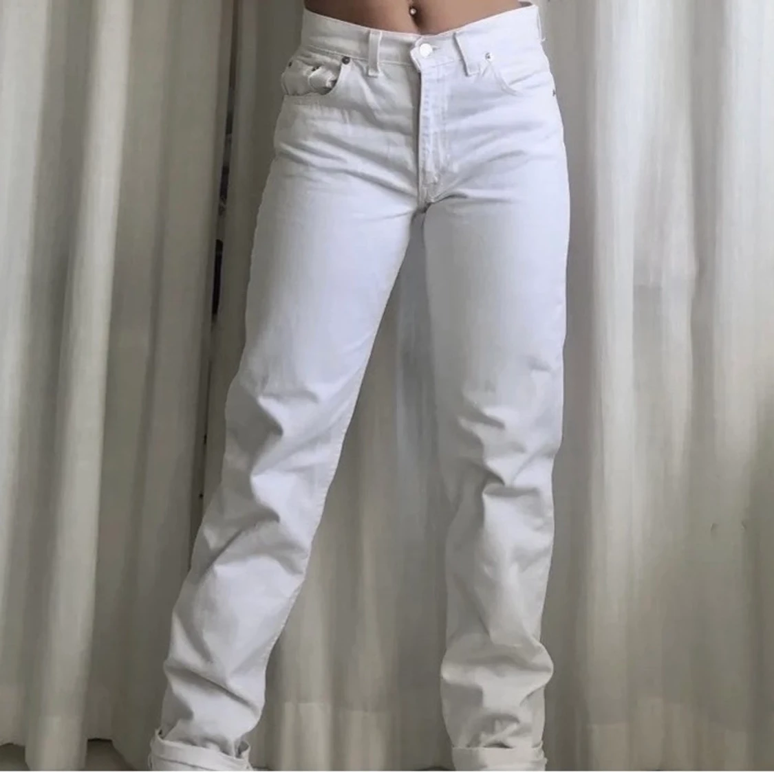 Vita lågmidjade levis jeans som är köpta här på plick. Säljer pga för små på mig. Skriv privat för fler bilder! (Första bilden är från förra ägaren) innebensmåttet är ca 77-78cm