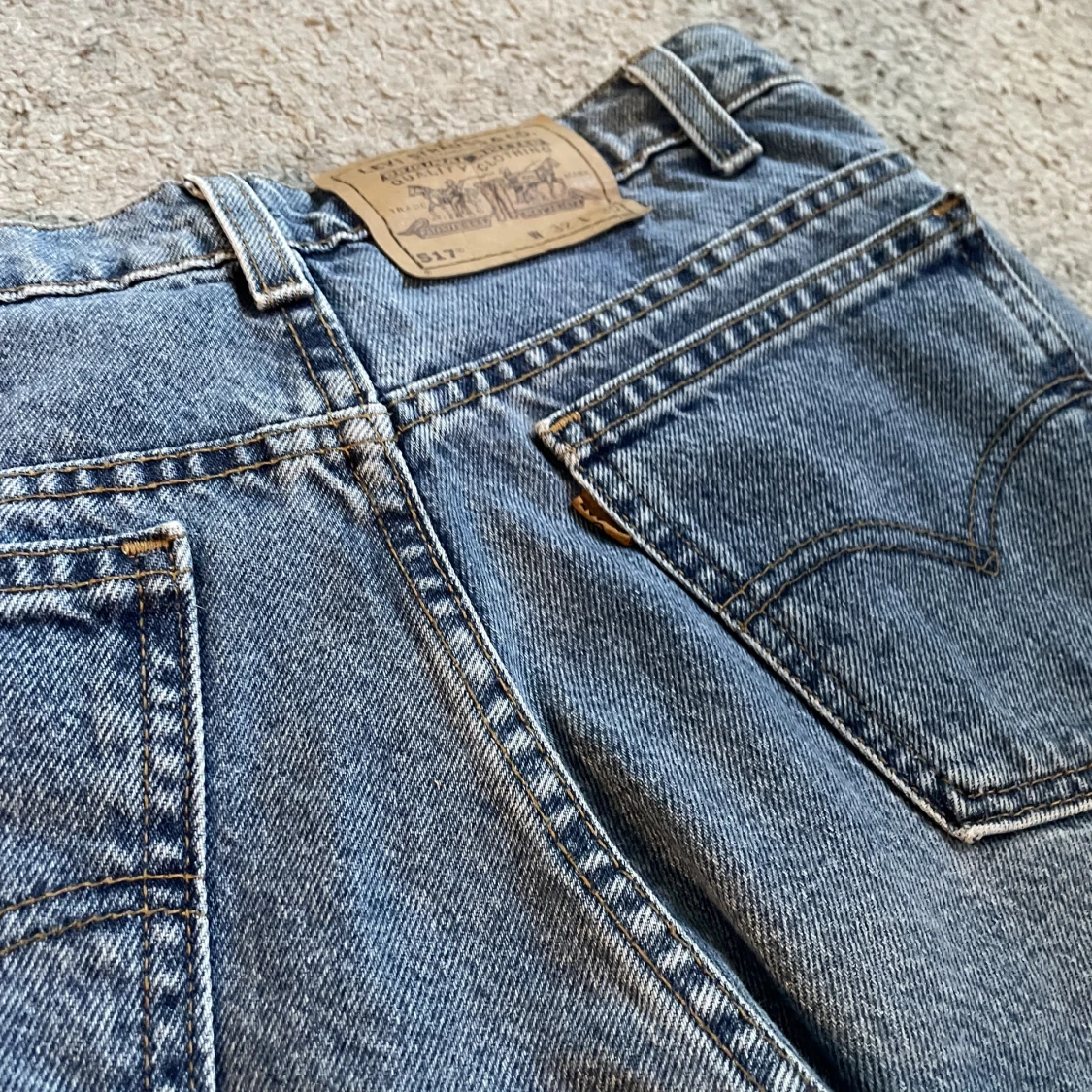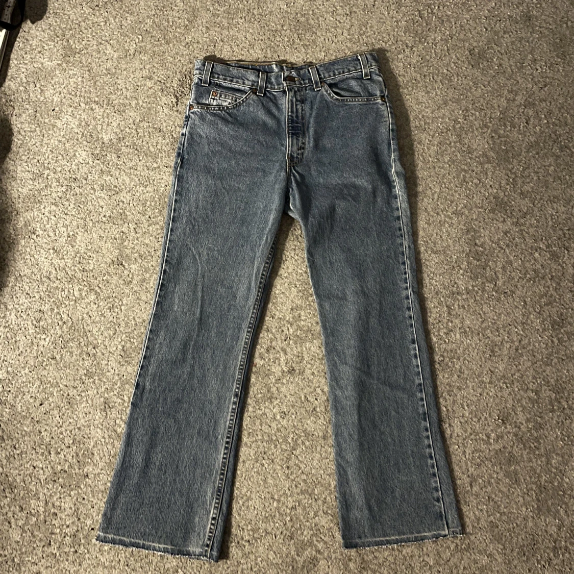 Orange tab levi 517 Bootcut Gjorda i USA 97 Storlek 32/30 Riktigt bra kvalite och knappast använda Uppsydda längst ner så lite längre Skriv om du har nån fråga eller vill ha fler bilder Mått: Midja: 40cm Ben öppning: 22 cm Front rise: 28cm Lår: 25cm