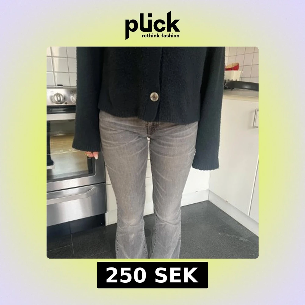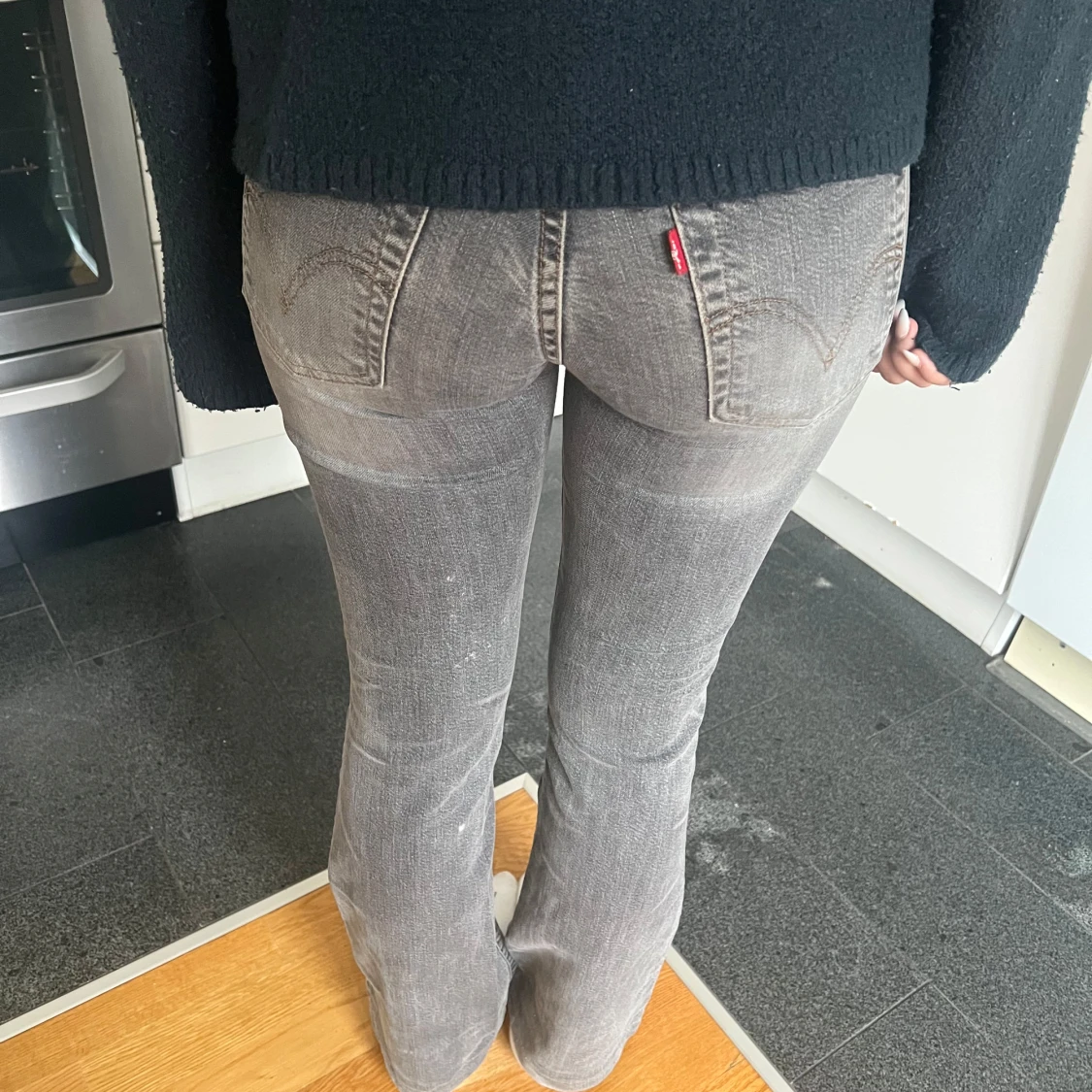 Säljer dessa snygga ett par bootcut gråa Levi's jeans! De är i grå tvättad färg och är verkligen perfekt nu till hösten. Köpte dom här på en secondhand butik i Paris och säljer då de är för stora för mig (min kompis på bilden). OBS! De har en fläck på höger ben under knät, men tycker inte att det är något som syns när man har de på. Om ni har några frågor eller under om bilder skriv!
