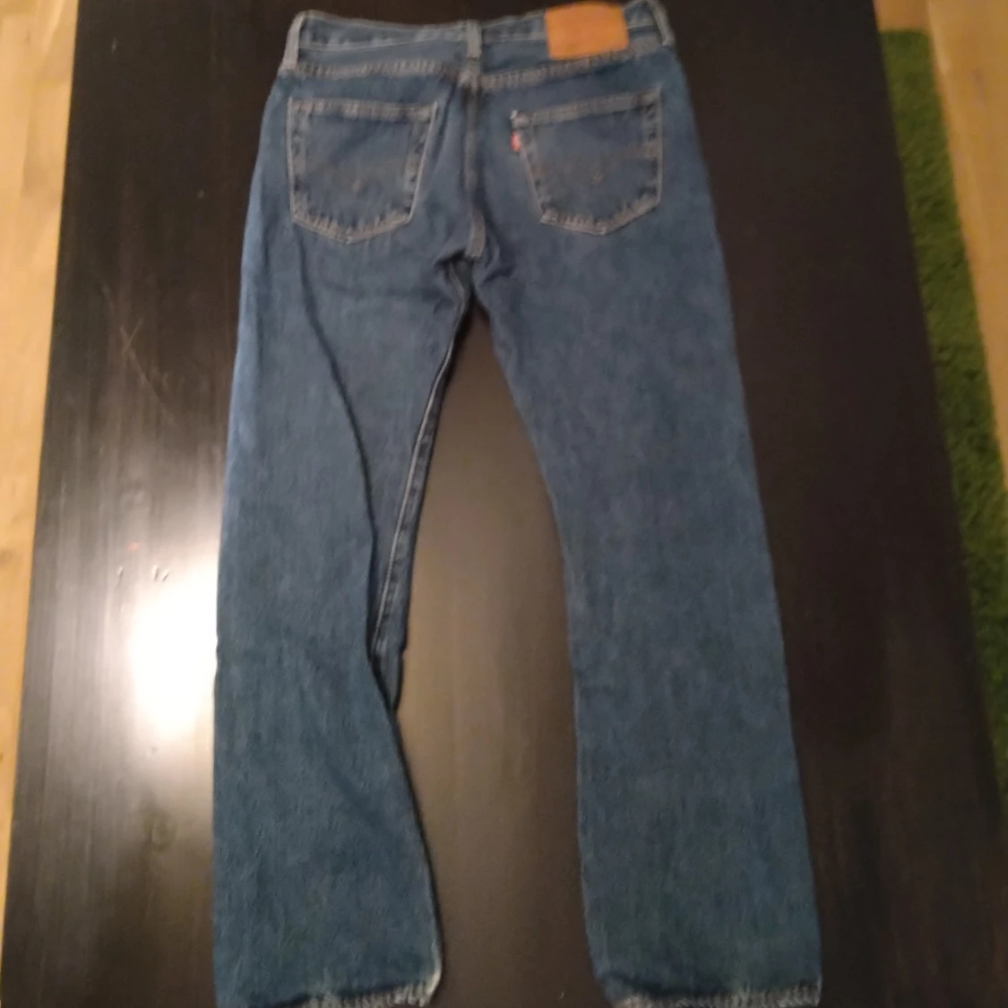 Levi's 501 i storlek W30/L30. Har ett litet ihopsytt hål längst ner på vänstra benet (bild 3), inget märkbart.