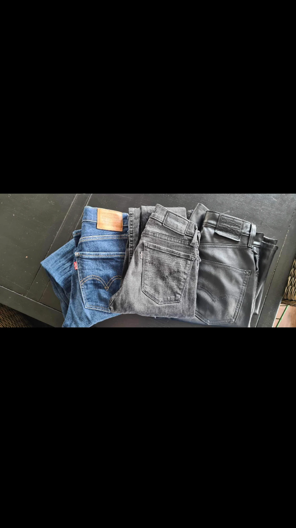 Tre stycken Levis jeans, ett par som är lite utsvängda. Det är dom i läder. De andra två är skinny. Använd någon gång men absolut inget som syns. Pris kan absolut diskuteras. Kan köpas var för sig eller allihopa. 300st eller alla för 800kr
