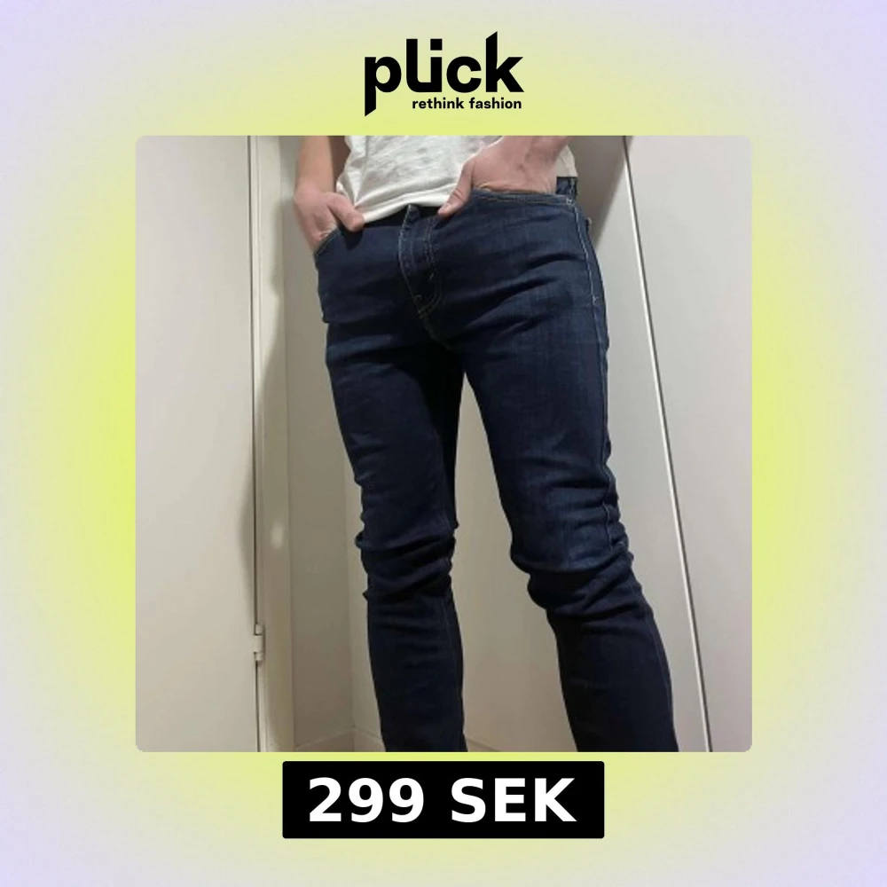 Snygga mörkblå jeans med en tight passform. Perfekta för en stilren look. De har en klassisk design med fem fickor och knappgylf.