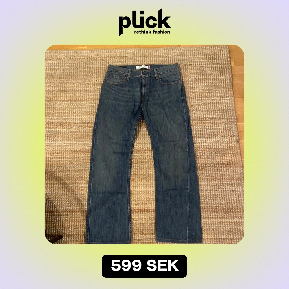 Säljer ett par klassiska Levi's 527 jeans i blå denim. De har en bootcut-stil och är i mycket bra skick.