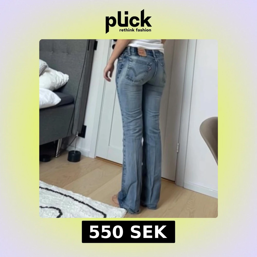 Säljer ett par Levis 527 jeans i ljusblå tvätt med klassiska femficksdetaljer och bootcut-ben. Jeansen har låg midja. Passar mig i längden som är ca 170 cm