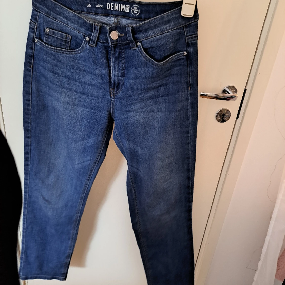 Blåa jeans i storlek 36 , använt 10 gånger lite lågmidjade
