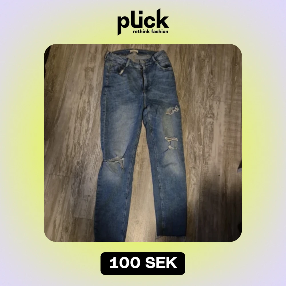 Blåa jeans med hål på knäna och låren