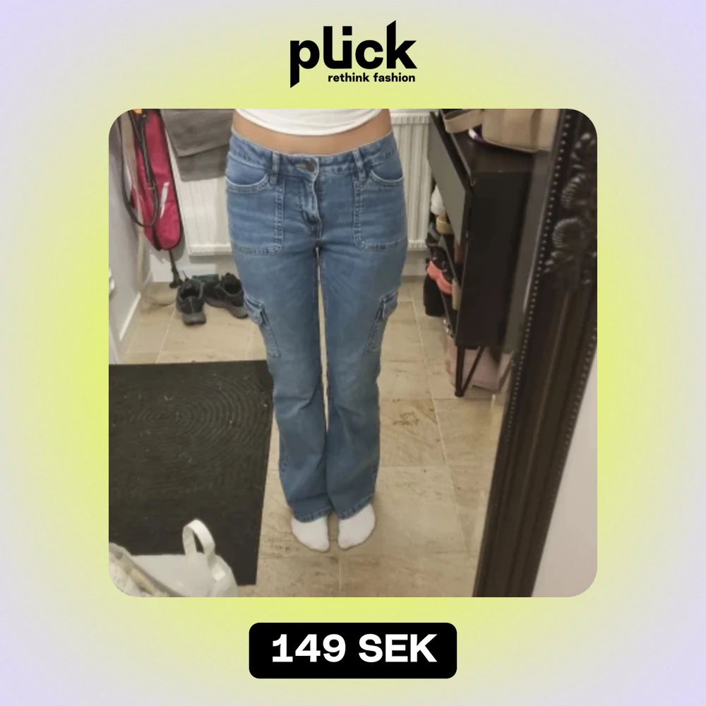 Jätte fina bootcut jeans i bra skick med fickor på benen. Säljer för att det inte är min smak längre♡