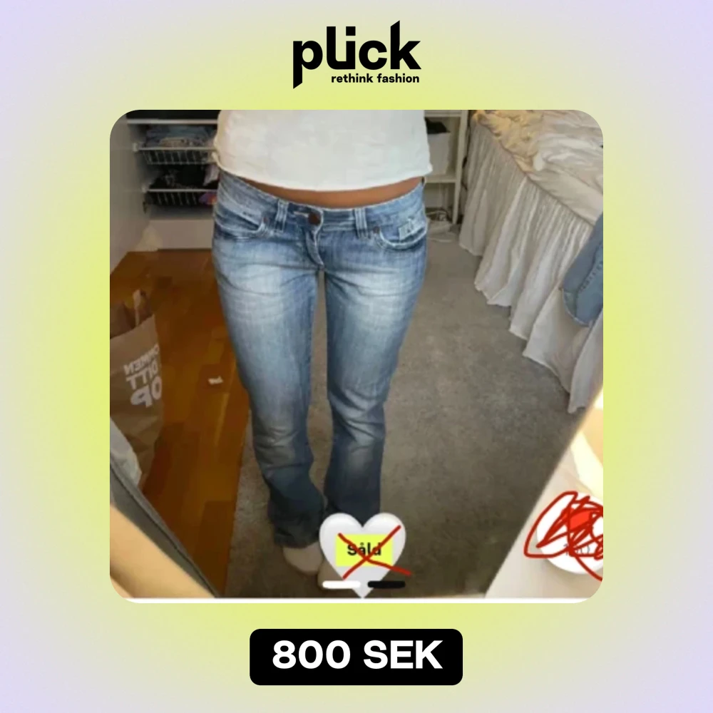 Jätte fina lågmidjsde jeans.Ca 38 över midjan och 80 innerben. Köpte dom precis här men säljer vidare för att de var för stora.Säljer för samma pris jag köpte för. ( bilderna är från förra säljaren)