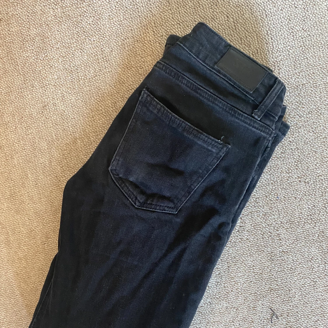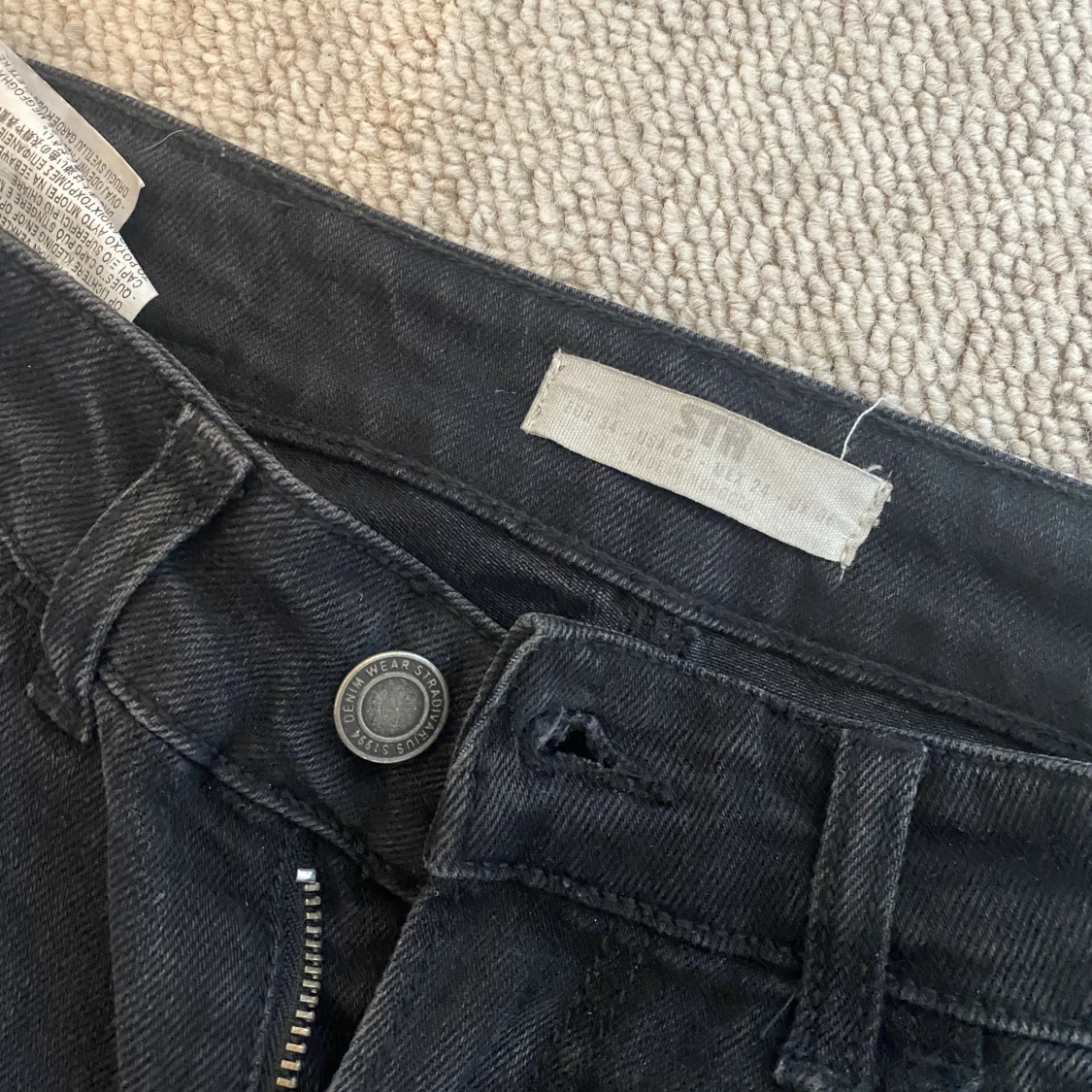 Jeans straight leg low waist.