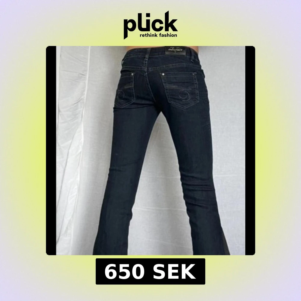 Bootcut lowwaist jeans med annat tyg vid benen (jeansen köptes med tyget påsytt)💗