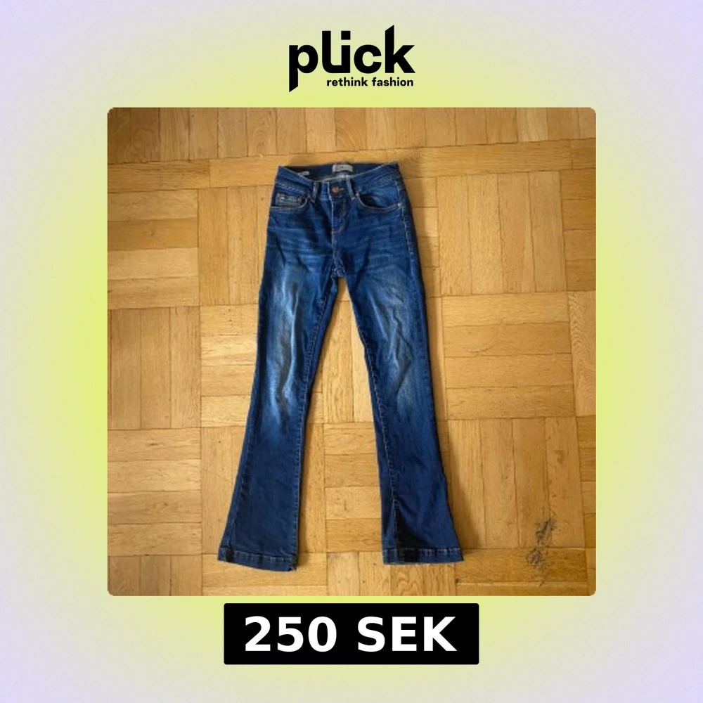 Snygga blå jeans från LTB med klassisk bootcut passform och kontrastsömmar. Jeansen har fem fickor, normal midja och coola detaljer på bakfickorna. Perfekt för dig som gillar en tidlös och avslappnad stil. Materialet är mjukt jeans och färgen är mörkblå med lätt slitning. Storleken är w25 L30.