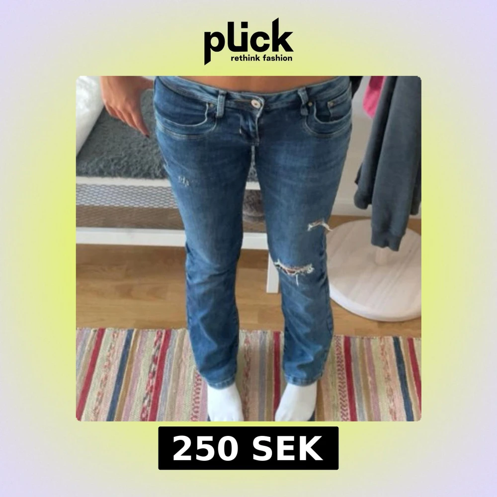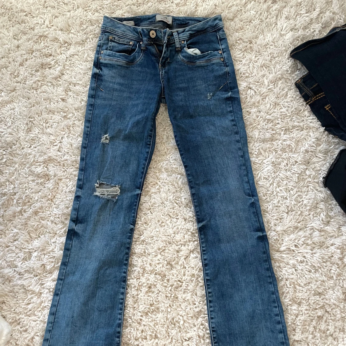 Snygga blå jeans i från LTB i modellen valerie som har slitna detaljer på låret och knät. Med normal passform och låg midja. Jeansen har en cool, avslappnad vibe och är tillverkade i mjukt denimtyg. Jag använder 27/26 i midja och är 164 lång💗