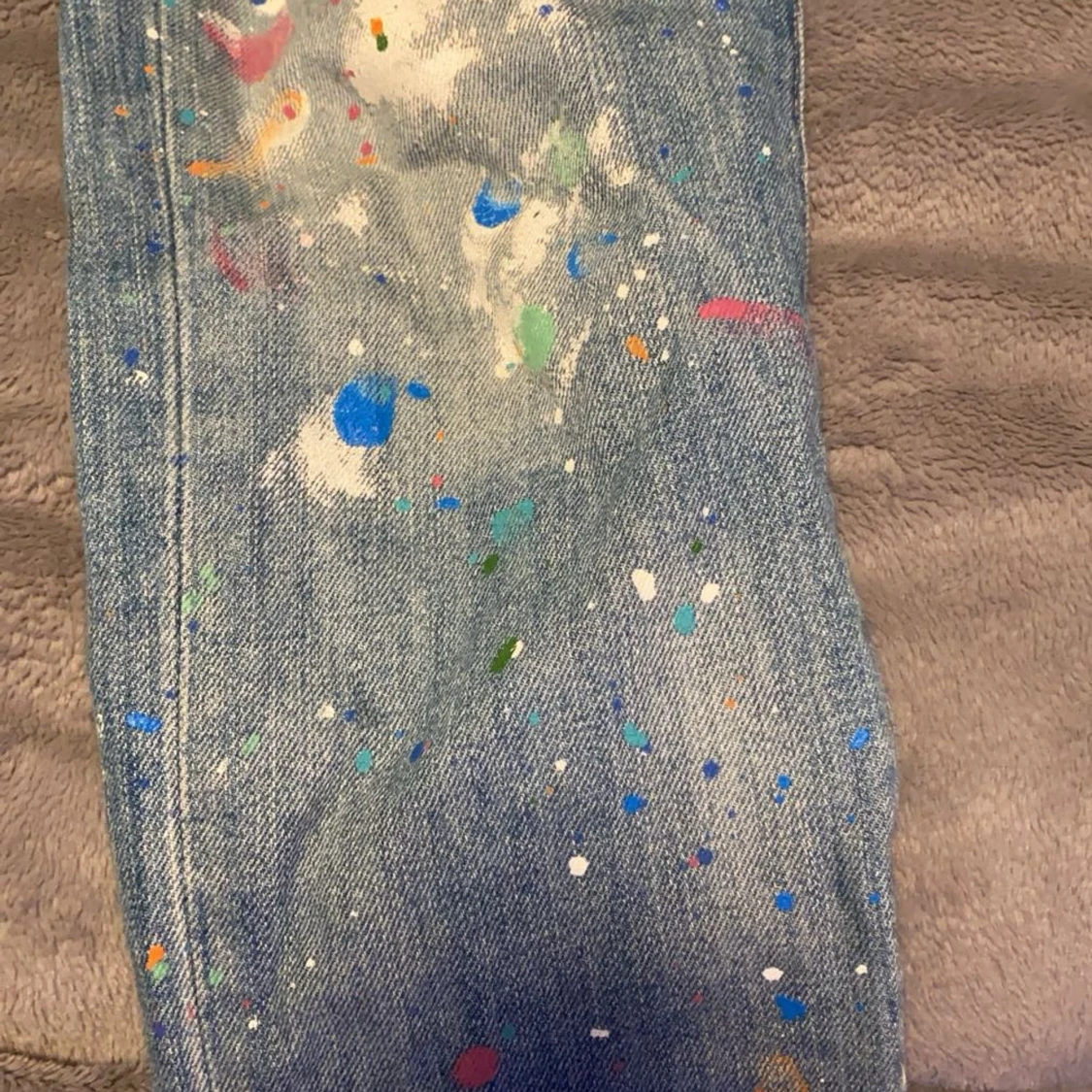 Unika jeans från Polo Ralph Lauren med coola färgstänk och slitna detaljer. Perfekt för en avslappnad och kreativ stil. Klassisk blå denim med en twist av färg och textur.
