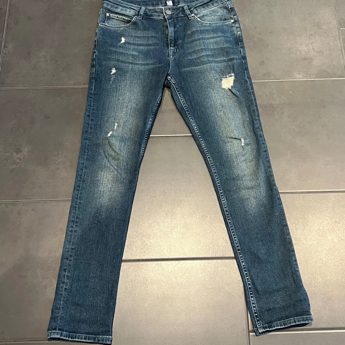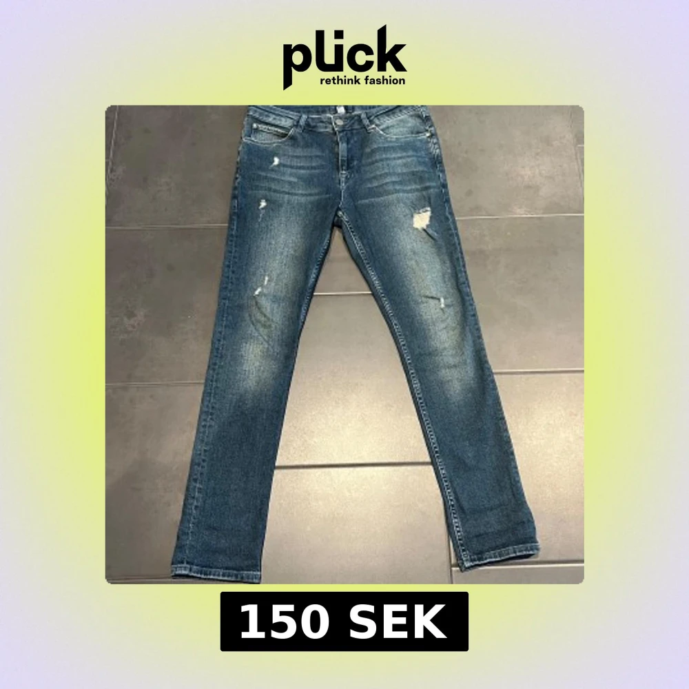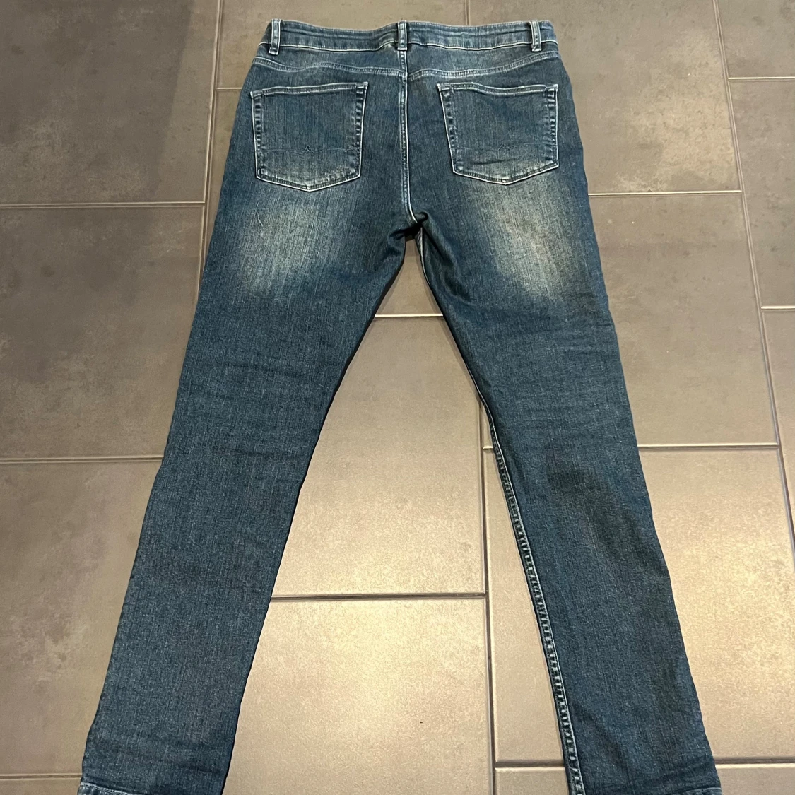 Snygga blå jeans, detaljer på benen. Denim jeans. Jag vet inte vad märket är. Bra skick. W30 L30