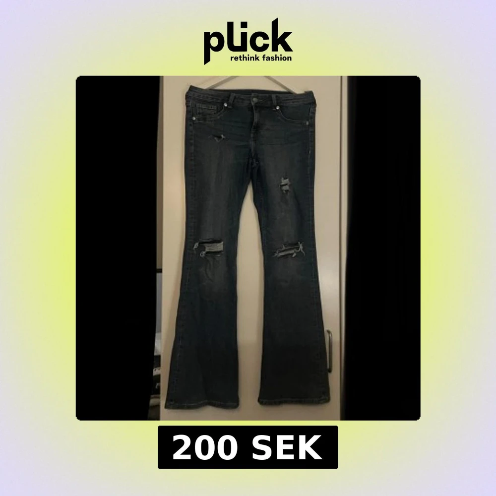Säljer dessa super snygga low waist jeansen med lite hål och slitningar, storlek 38! Köpta för ganska länge sen på H&M men har knappt använt! Pris kan diskuteras, skriv privat för mer frågor och funderingar 🥰