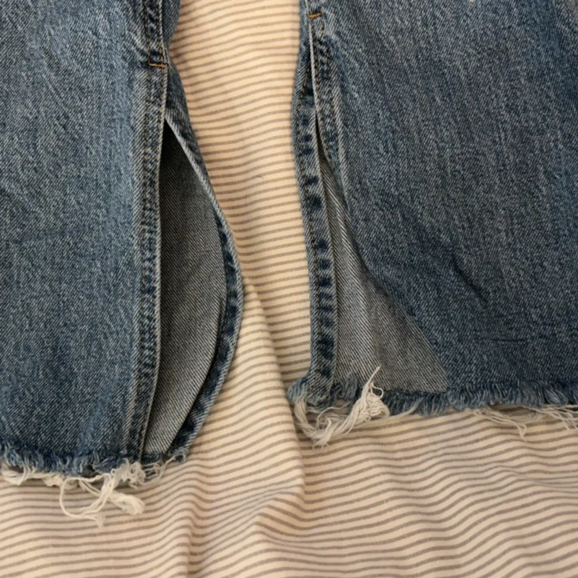 Ett par jeans som är hög midjade med slits. Jätteskönt och stretchiga.
