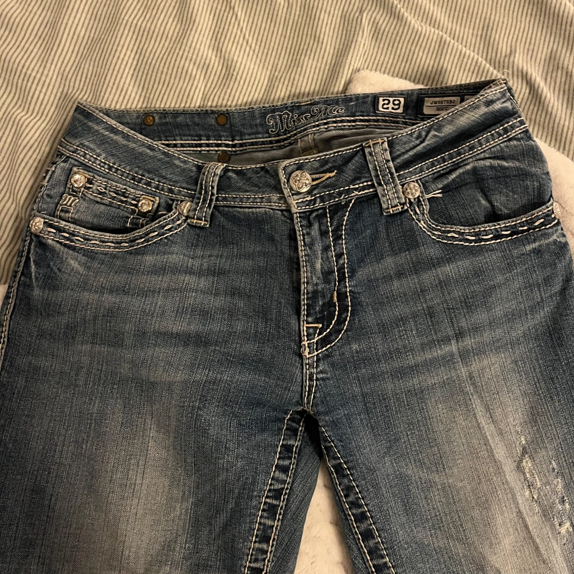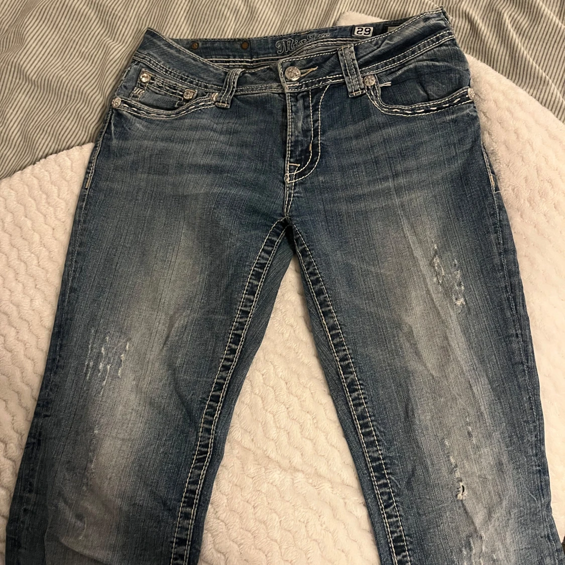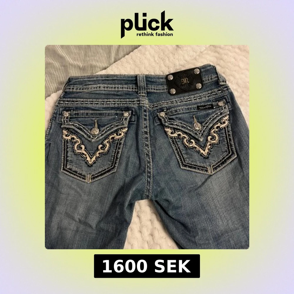 Miss me jeans med väldigt låg midja och utsvängda/ bootcut ben. Bästa byxorna och formar rumpan så fint. Storlek w29 men lite små i storleken så funkar även W27/W28.