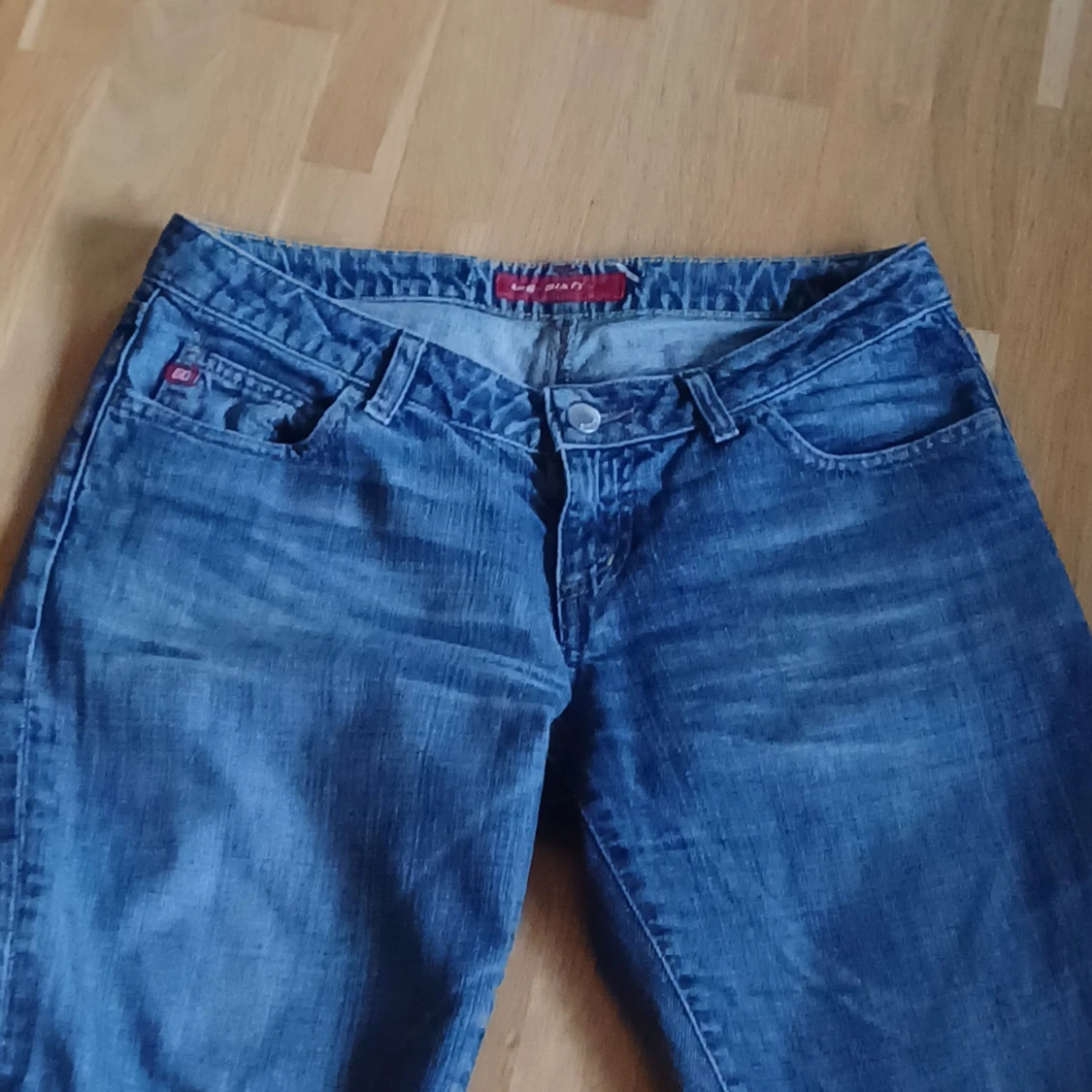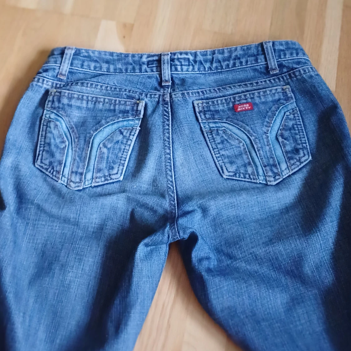 Snygga blå Miss sixty jeans. De är något bootcut. Jeansen har Miss sixty fickor. Ca 6 cm uppsydda som man kan sprätta upp sömmen på för att få tillbaks orginallängden. Jag är 167cm.