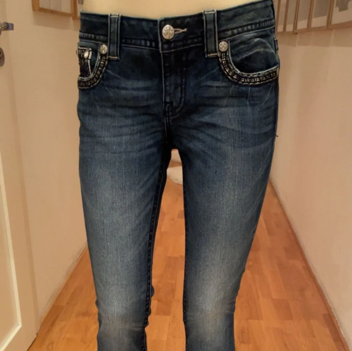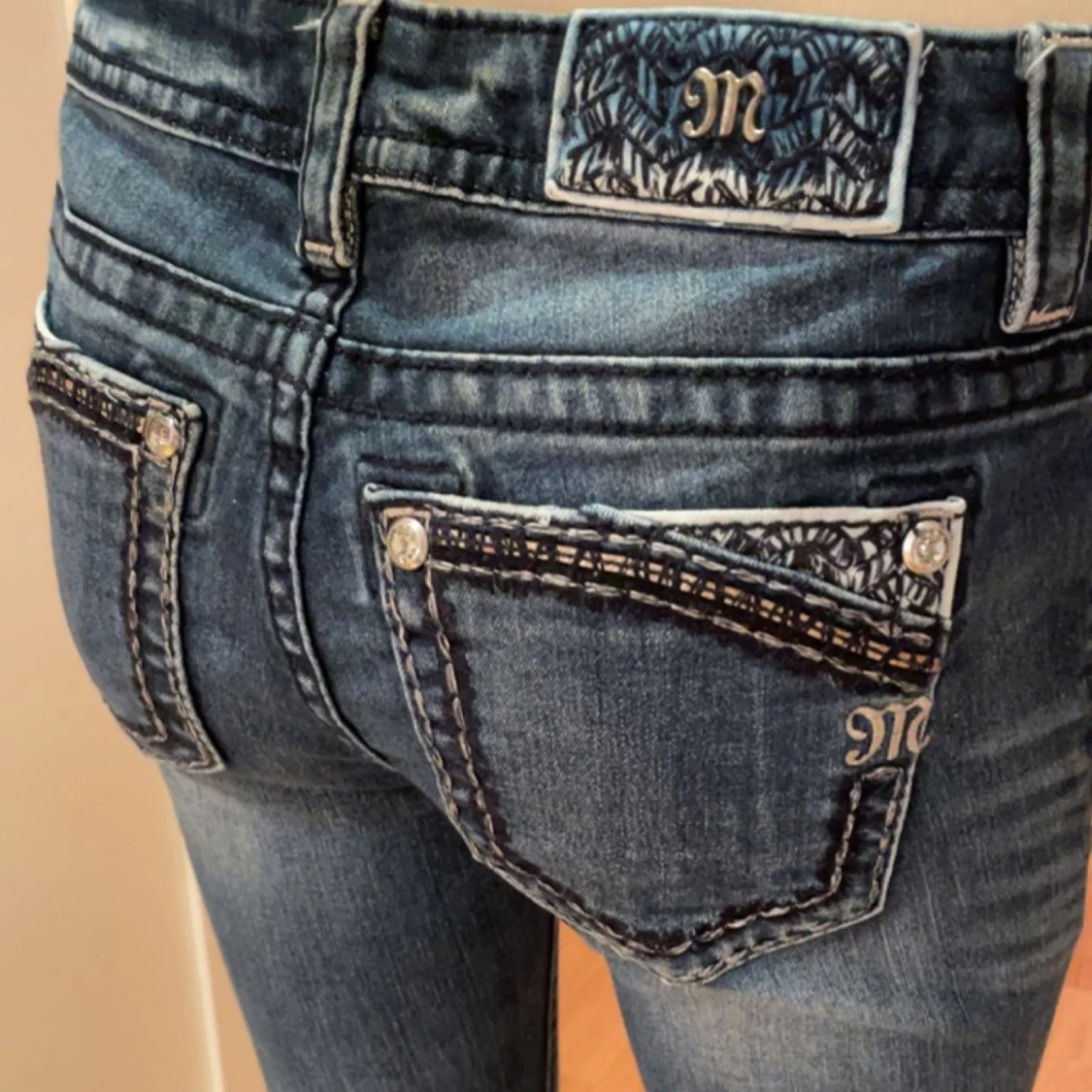 Slim bootcut jeans från Miss me. Unika fickor med snygga färger och mönster. Skriv gärna vid frågor eller prisförslag💗