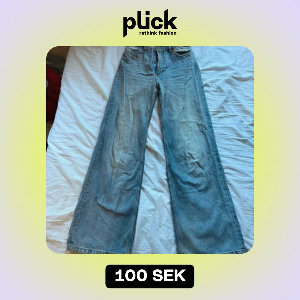 Fina wide leg jeans som inte kommer till användning längre. Från monki och är modellen ”yoko”. Rätt använda men annars bra skick :)