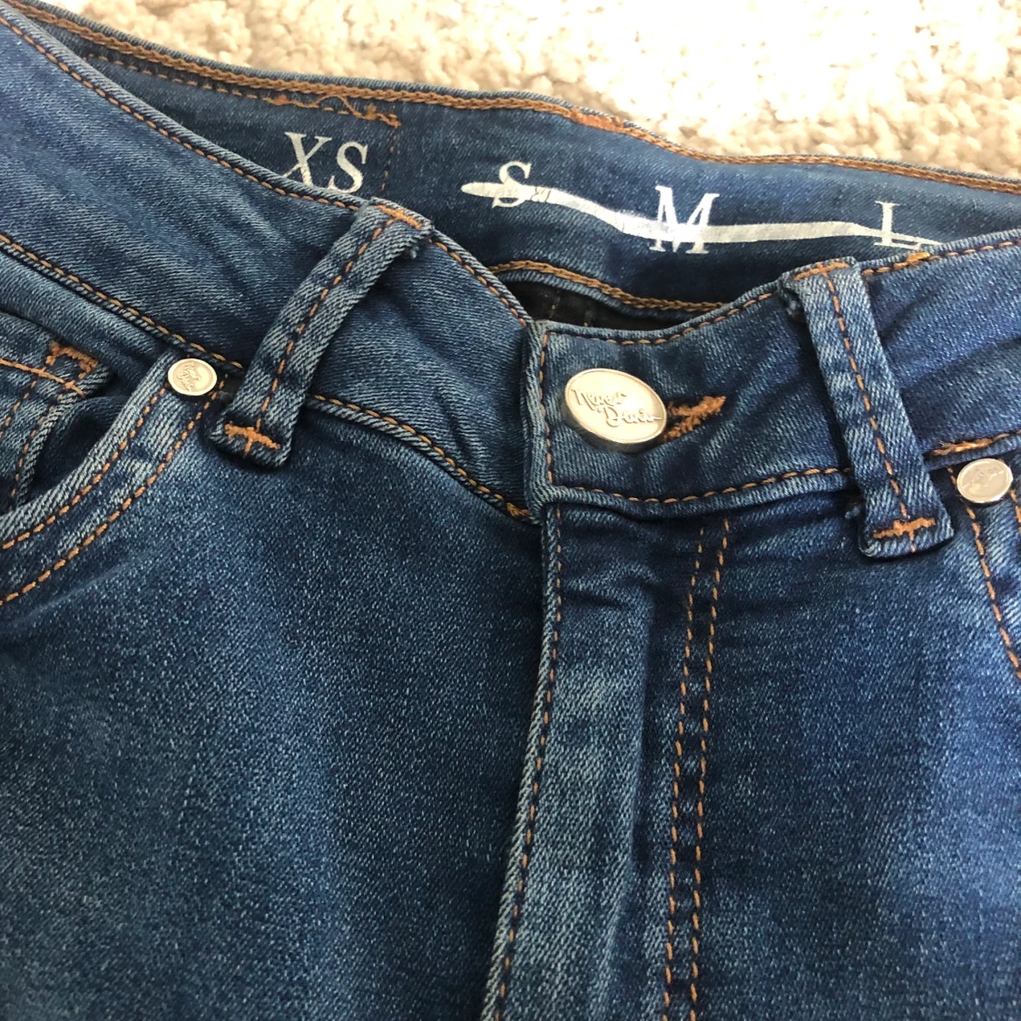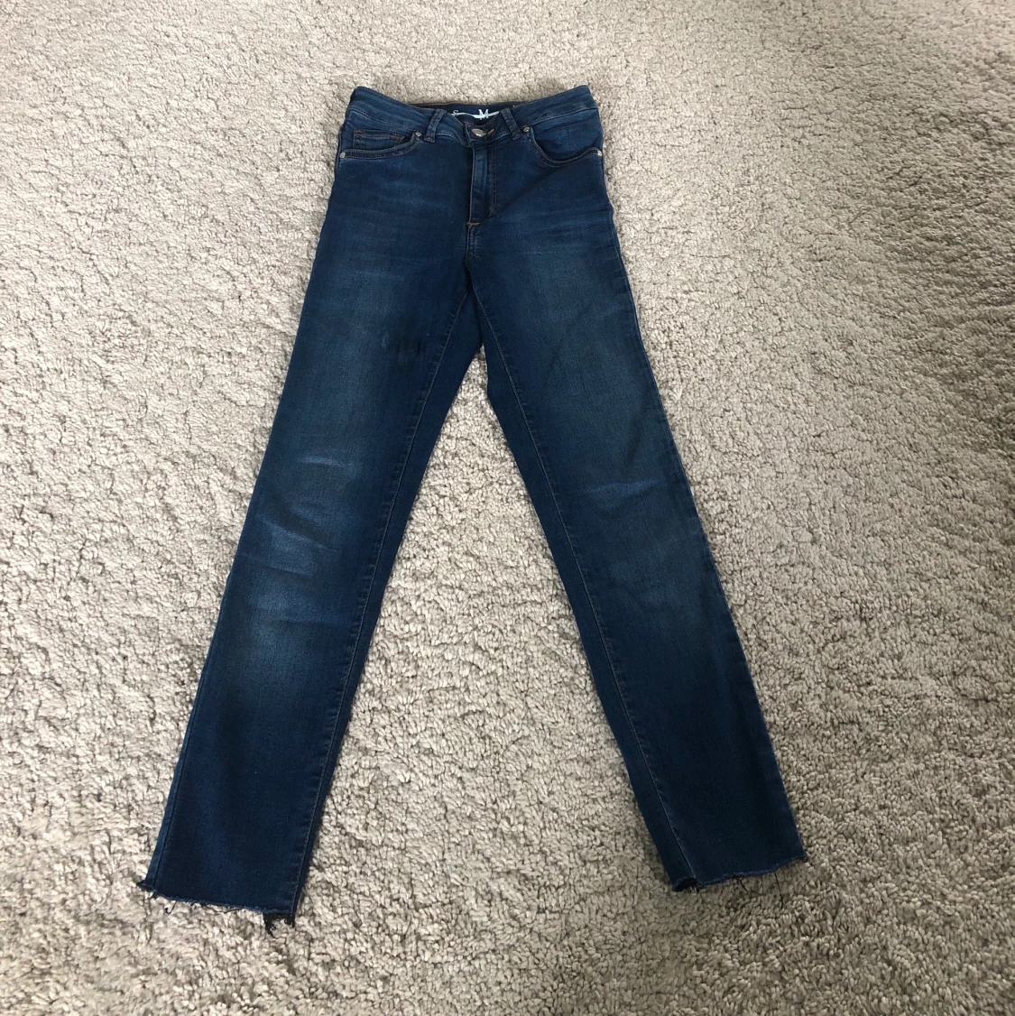Mörkblåa jeans med slitningar nedtill, väldigt bra skick🤩 köparen står för frakt