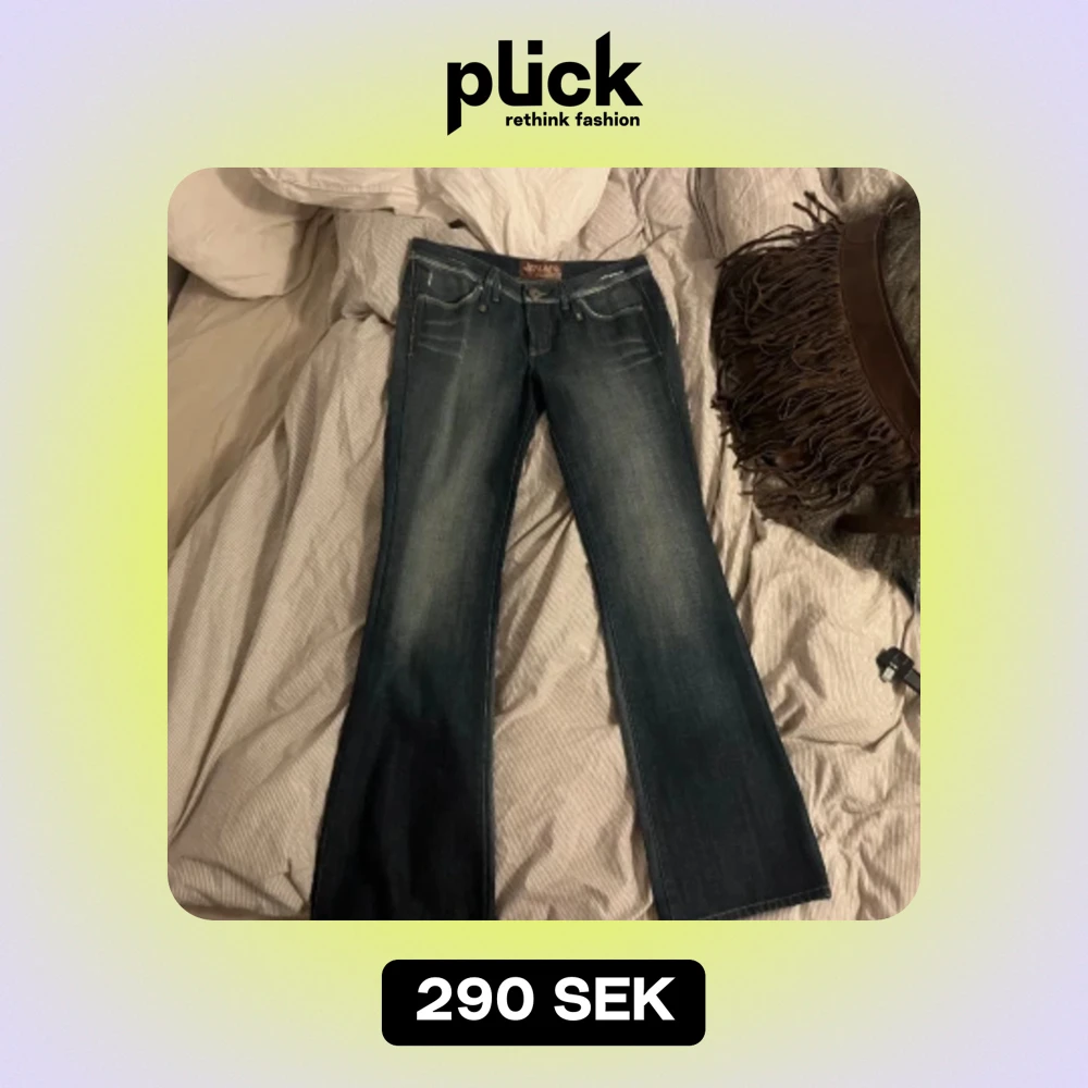 Supersnygga bootcut jeans! Lågmidjade och jättesnygg färg. Är storlek 30/34 men passar mig som brukar ha M och är långa💞