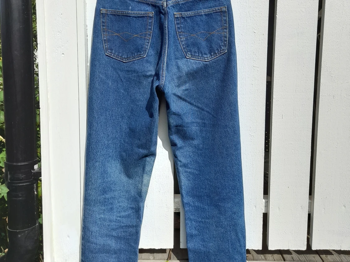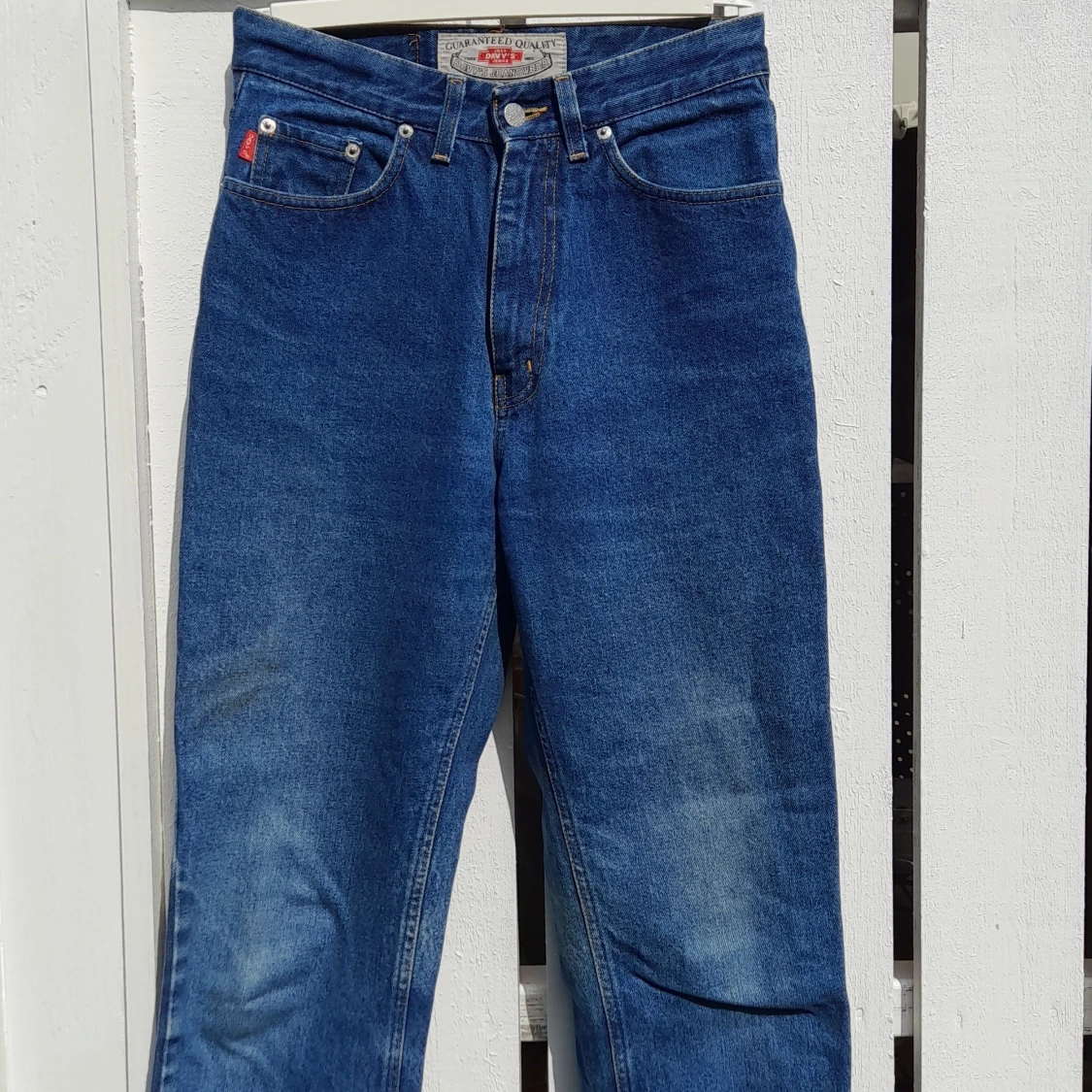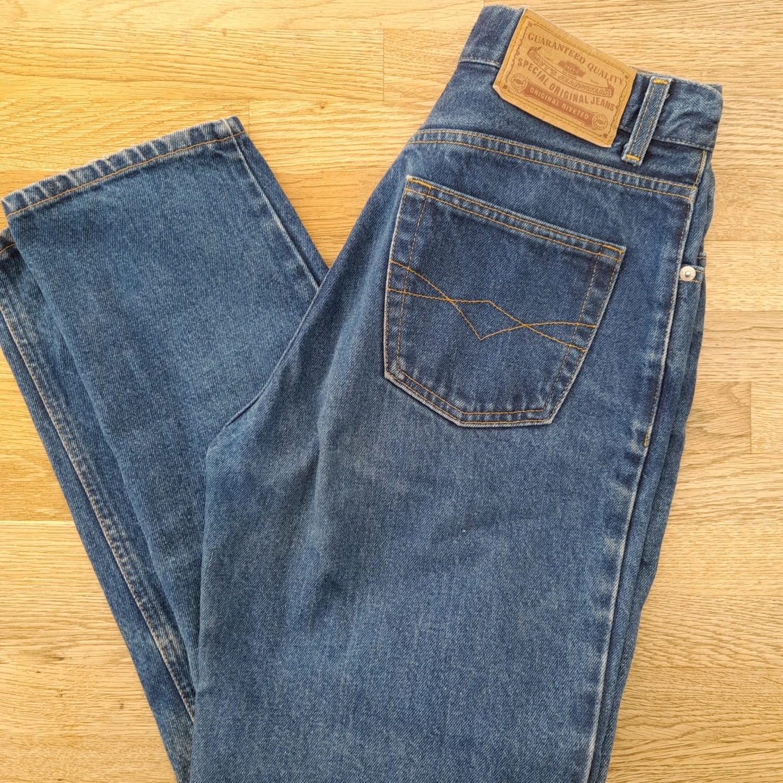 Riktigt snygga mörkblåa jeans som är i bra skick. Men de är tyvärr lite korta i benen på mig som är 175cm lång. Högmidjade