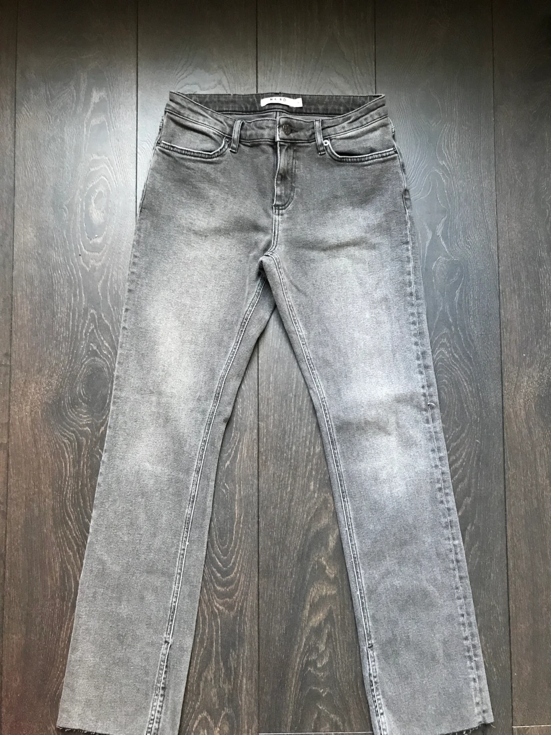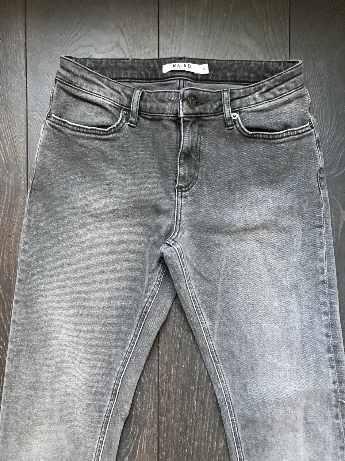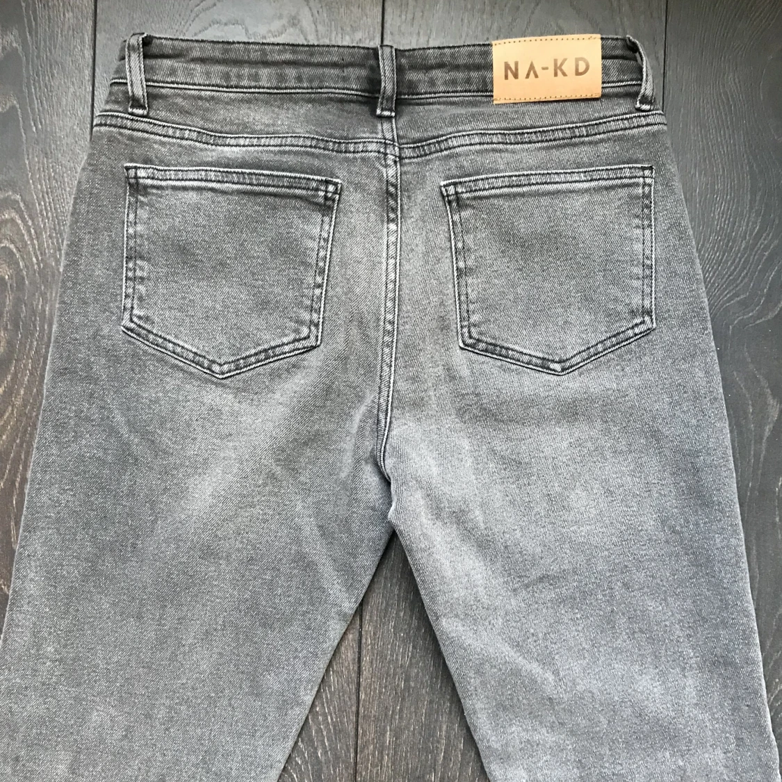 Helt oanvända jeans i grå tvätt från Moa Mattsons kollektion för NA-KD. Normalhög midja och raka i benen med en liten slits vid foten :) Orginalpris är 600