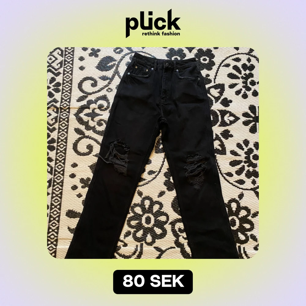 Svarta jeans med hål, straight och highwaist 🖤använda Max 3 gånger
