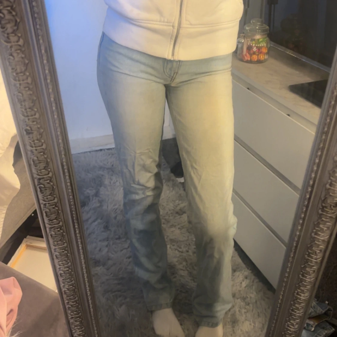 Ljusblåa jeans som typ är raka i benen, high waist🩷