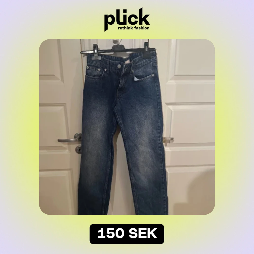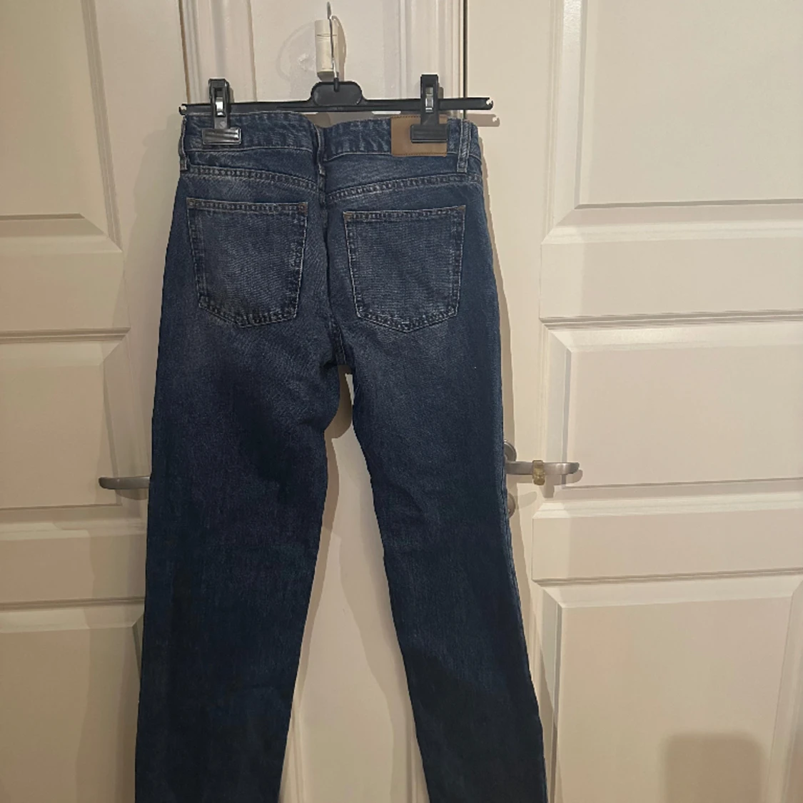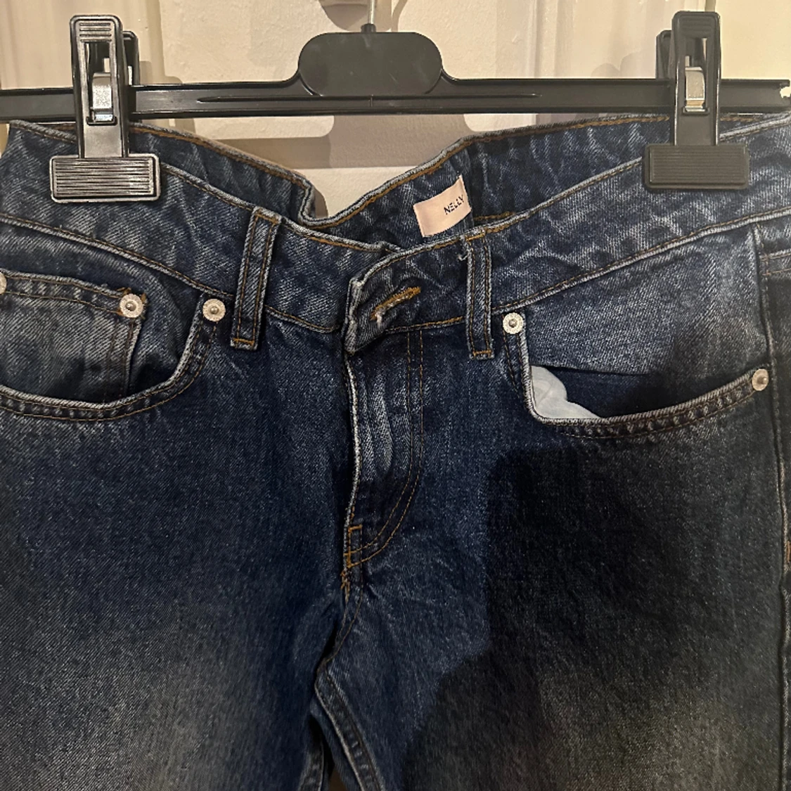 Low waist mörklblåa jeans från Nelly i stl 34. Köpta nyligen och aldrig använda pga för stora och inte min stil. Skriv om ni vill ha bild på eller bättre bild💕