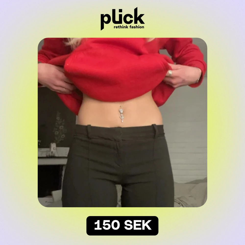 Väldigt Lågmidjade byxor från Nelly köpta här på Plick men tyvärr för små för mig! Bra skick! Skulle säga dom passar någon som är 160-165cm