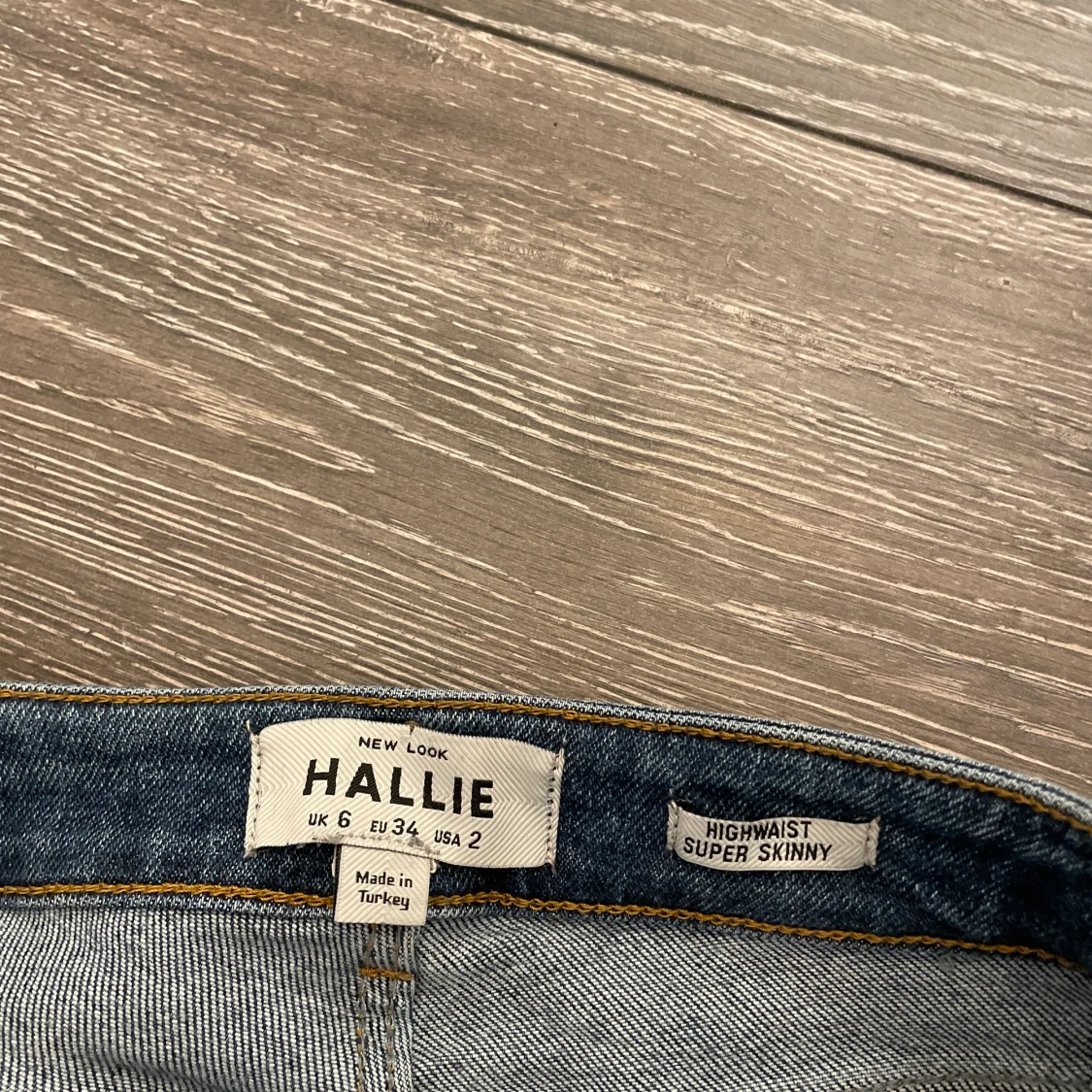 Säljer min ”Hallie highwaist super skinnet” jeans från new look i storlek 34. Denna modellen har ett hål på högra knät. Köparen står för frakten. Rök och djur fritt hem! OBS står ej för postens slarv.