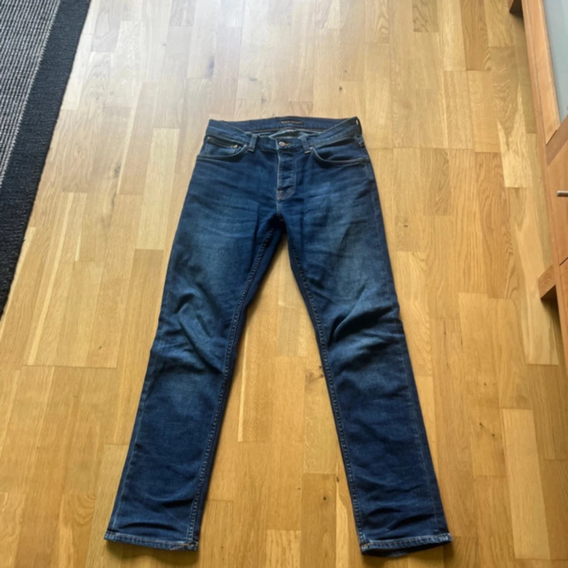 Snygga mörkblå jeans från Nudie Jeans med klassisk femficksdesign och kontrastsömmar. Modellen har rak passform och normal midja, tillverkade i slitstarkt bomullsjeansmaterial. Perfekt för dig som gillar stilrena och tidlösa jeans.