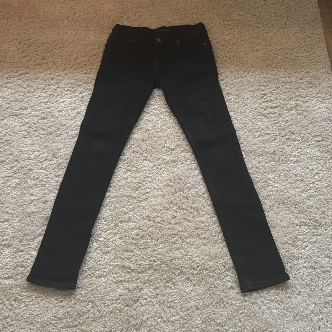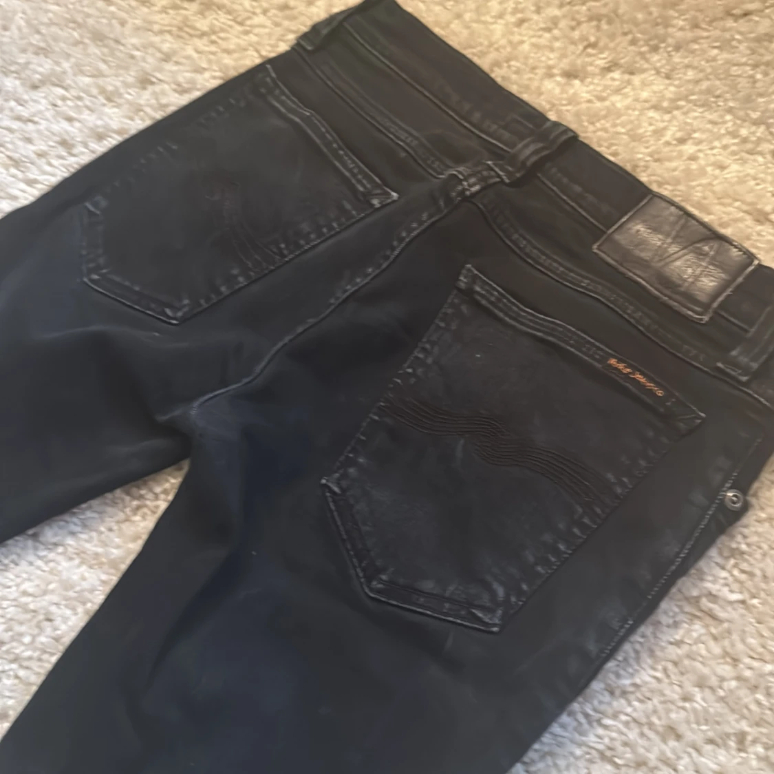 Svarta jeans från Nudie Jeans med klassisk femficksdesign och snygga detaljer på bakfickorna. Modellen är skinny med smal passform och midwaist. Materialet är jeans med en mjuk känsla och diskret tvättad look. Perfekt för dig som gillar stilrena och tajta jeans.