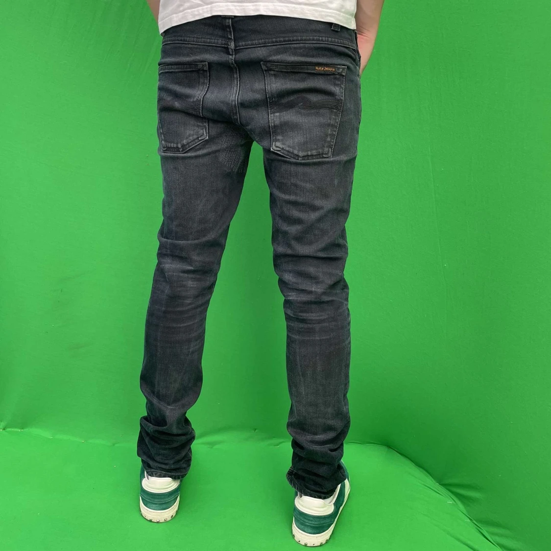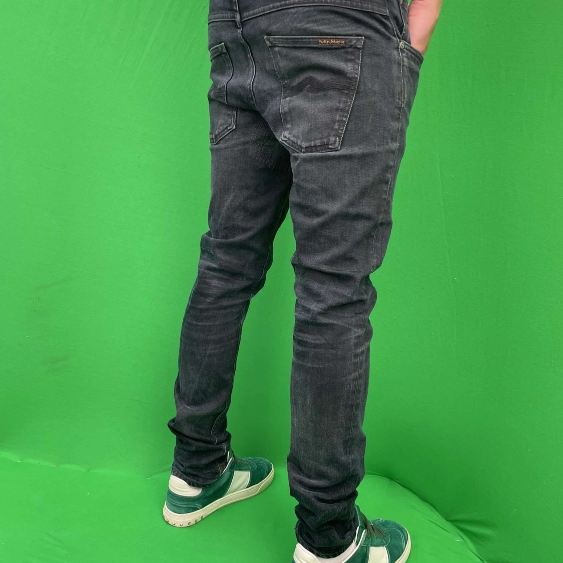 Snygga svarta skinny jeans från Nudie Jeans med klassisk femficksdesign och diskreta slitningar. Storlek 32W 34L Jeansen har en smal passform och är tillverkade i stretchig bomullsdenim för en bekväm känsla. Perfekta för dig som gillar en modern och stilren look.