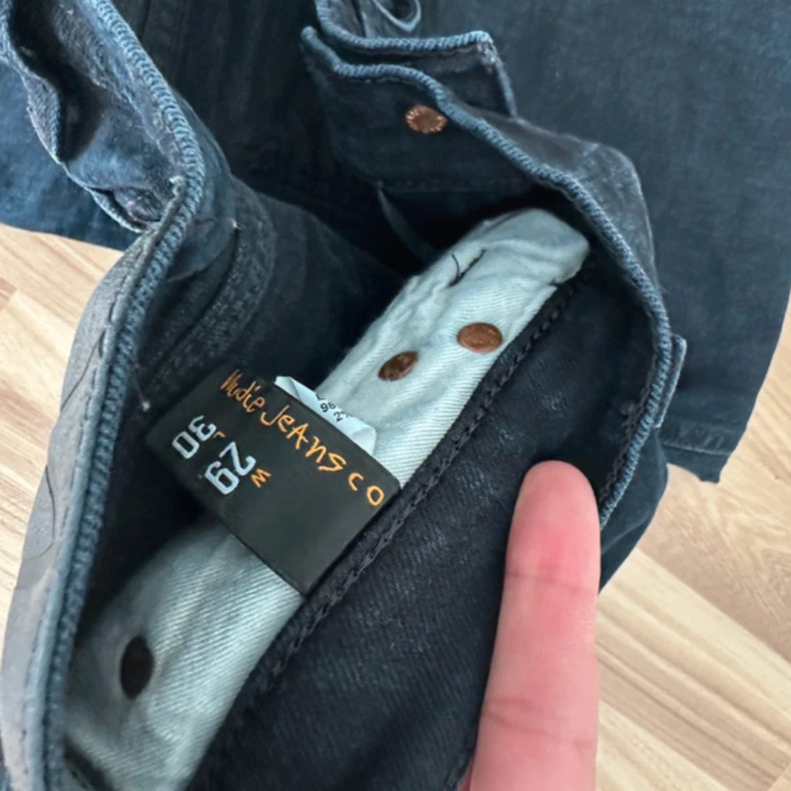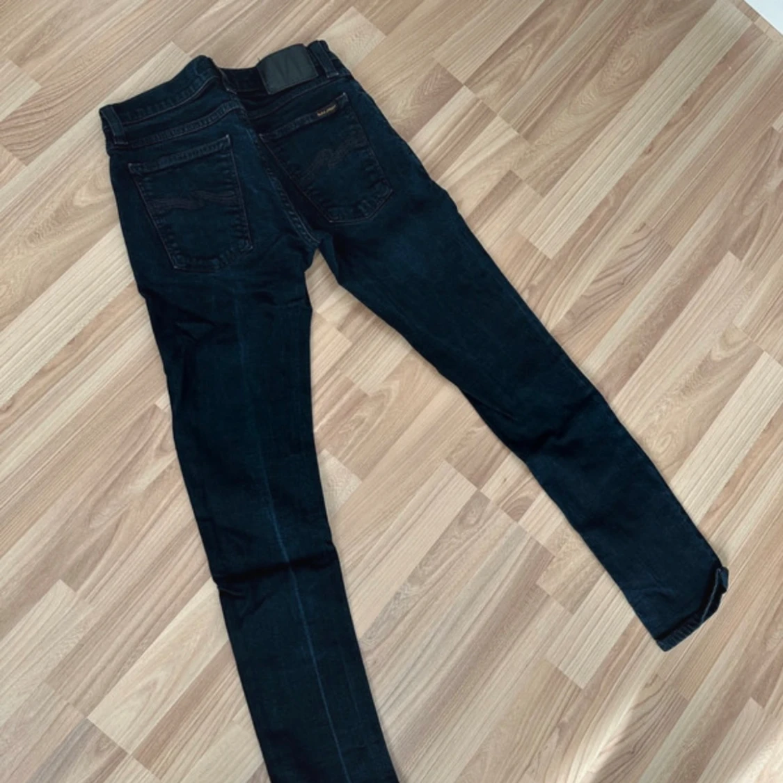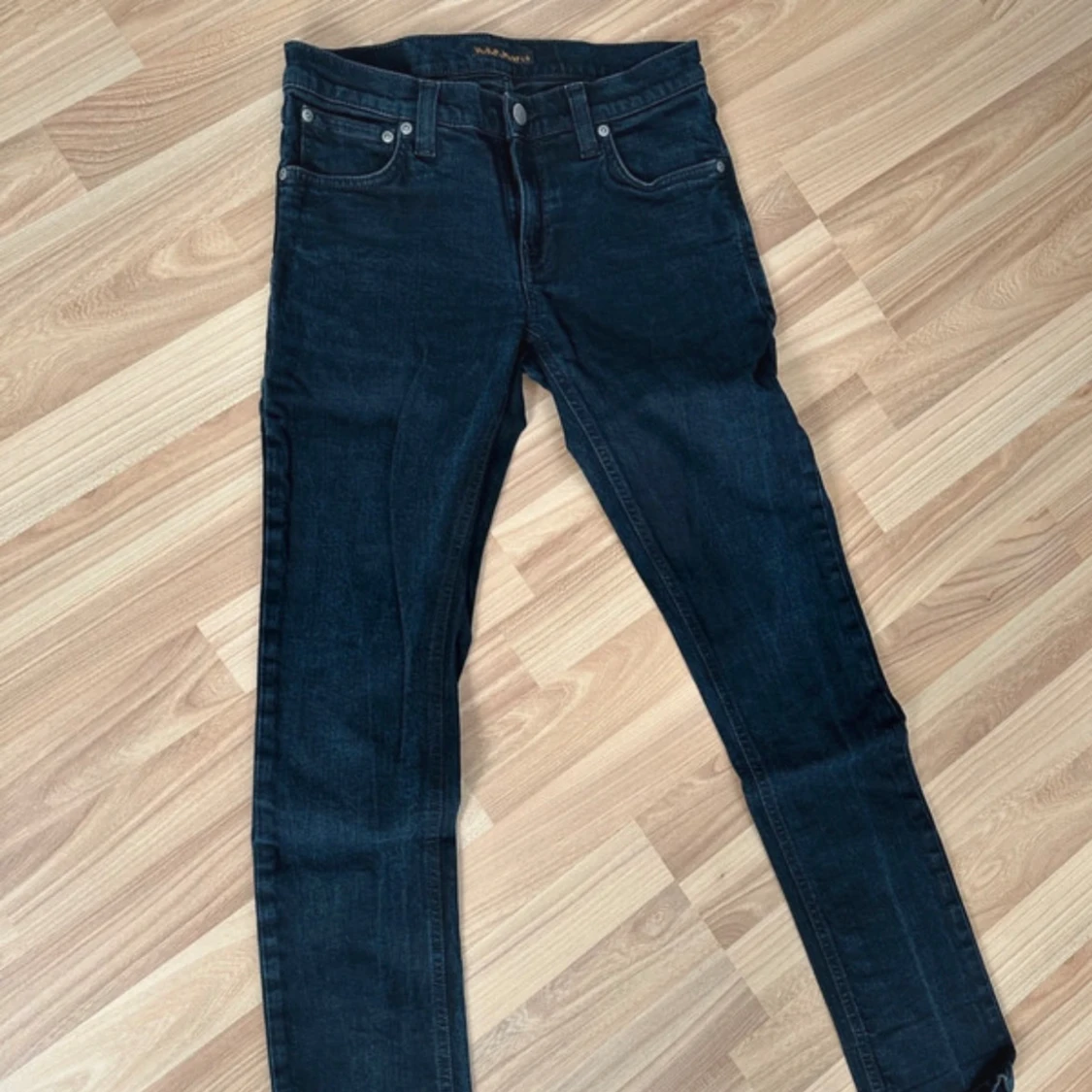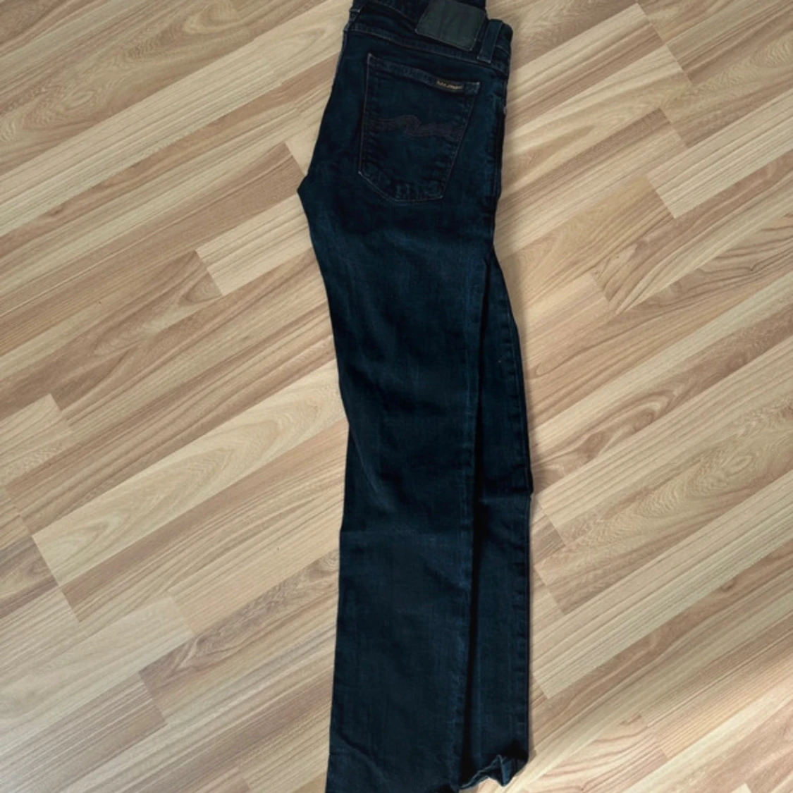 Ett par mörkblå nudie jeans i perfekt skick utan defekter. Den är i modellen long John och säljs då den inte används så mycket. Storlek W29/L30